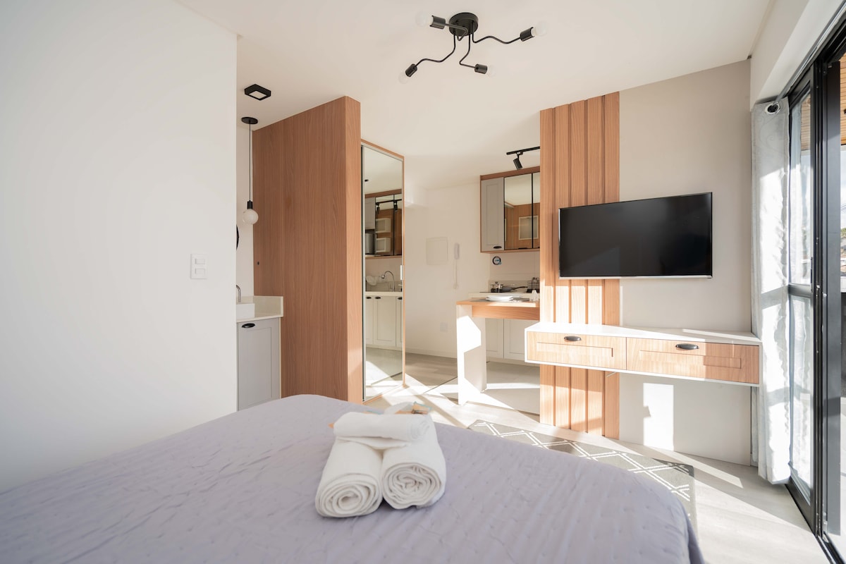 Studio completo para (2) duas pessoas , com vaga de garagem , localizado a (1) uma quadra da PUC. com ar condicionado, Wi-fi com otima velocidade, TV Smart, cama de casal , cozinha equipada , roupas de cama e banho, shampoo , sabonete, mesa para trabalho, secador de cabelo , ferro de passar , próximo ao Shopping Estação, Carrefour e outros mercados , padarias e restaurantes. É super confortável com toda segurança, com self checkin/checkout.