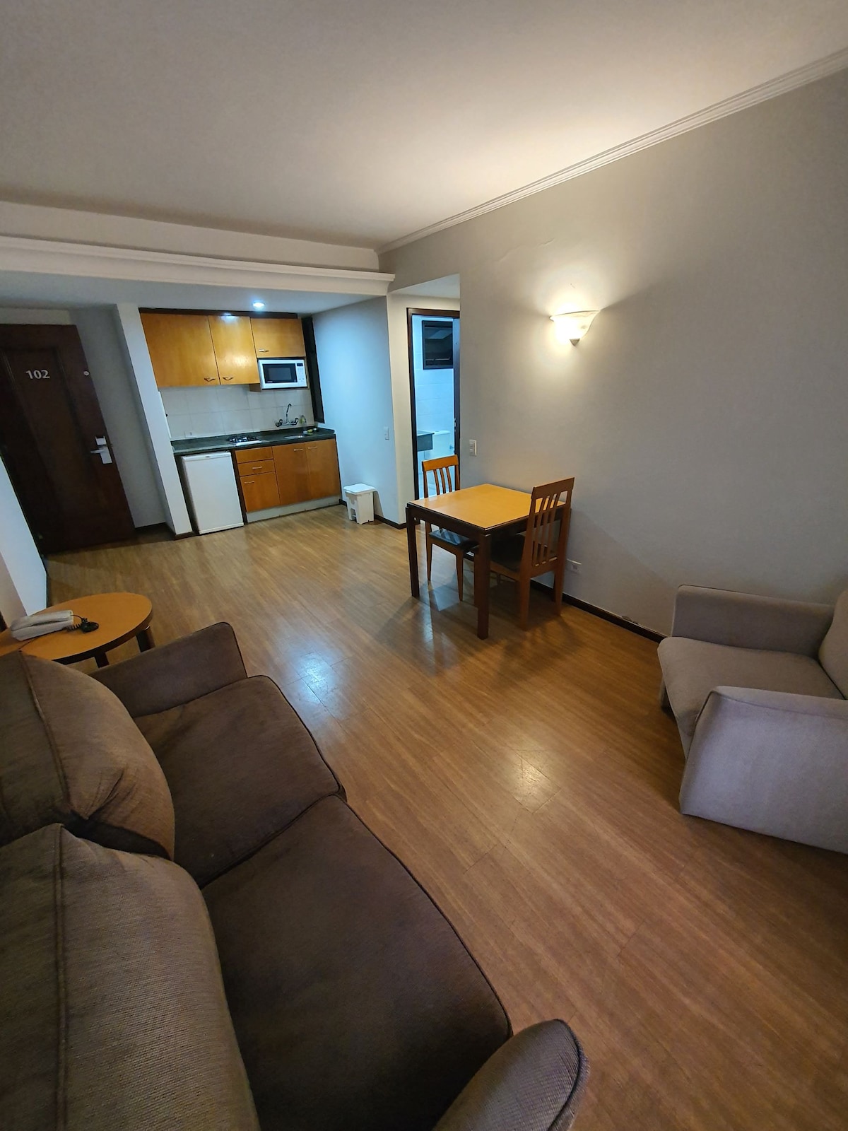Excelente Studio, em frente ao shopping Curitiba. Roupa de cama e banho, padrão hotelaria. Condomínio Clube, com estacionamento no prédio pago. É imprescindível o envio do nome completo e cpf. Não temos vaga incluso na diária. Estacionamento terceirizado no subsolo. Não permitimos visitantes, apenas hóspedes previamente cadastrados. Não aceitamos reservas para terceiros, um dos hóspedes obrigatoriamente deverá ser o solicitante da reserva.