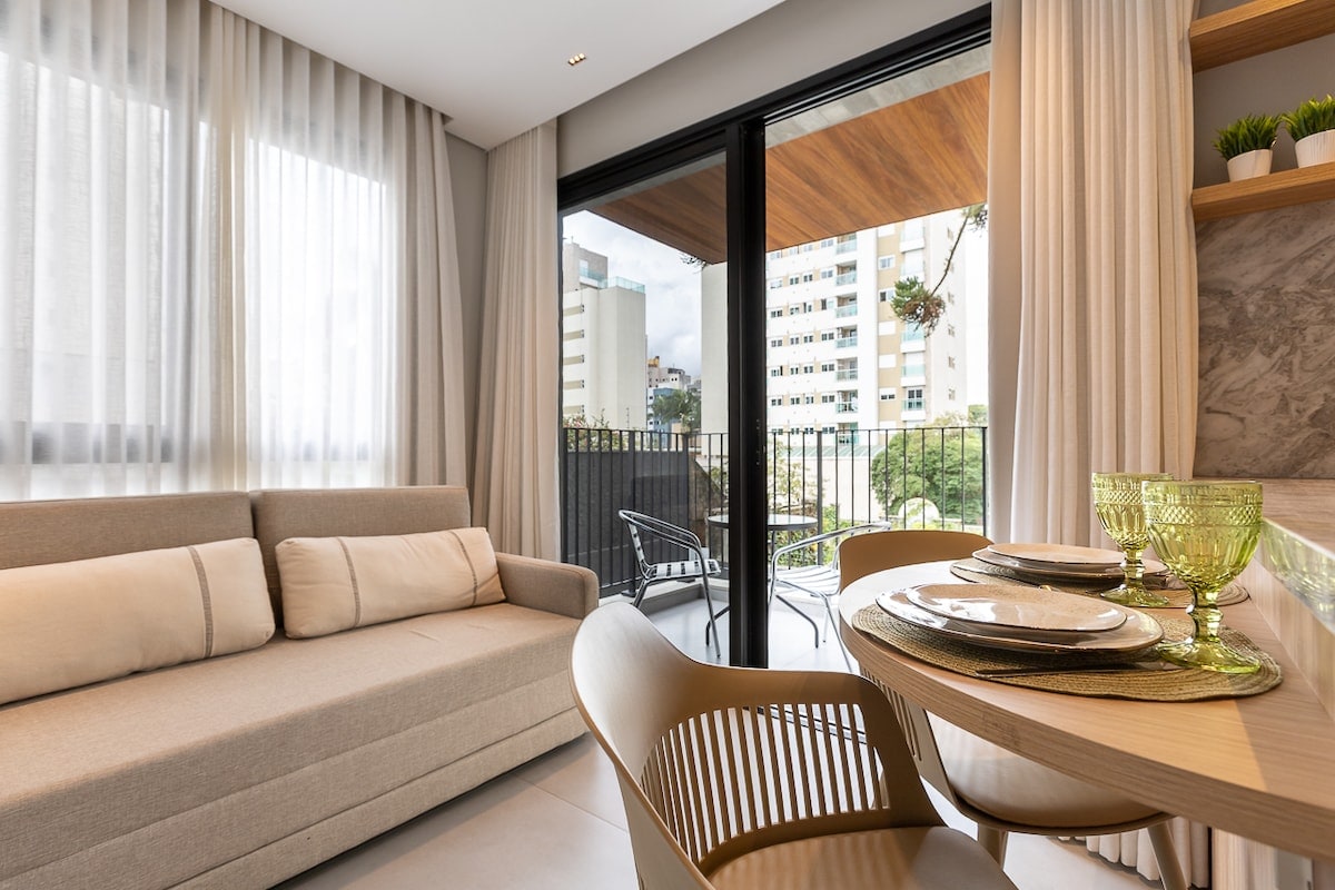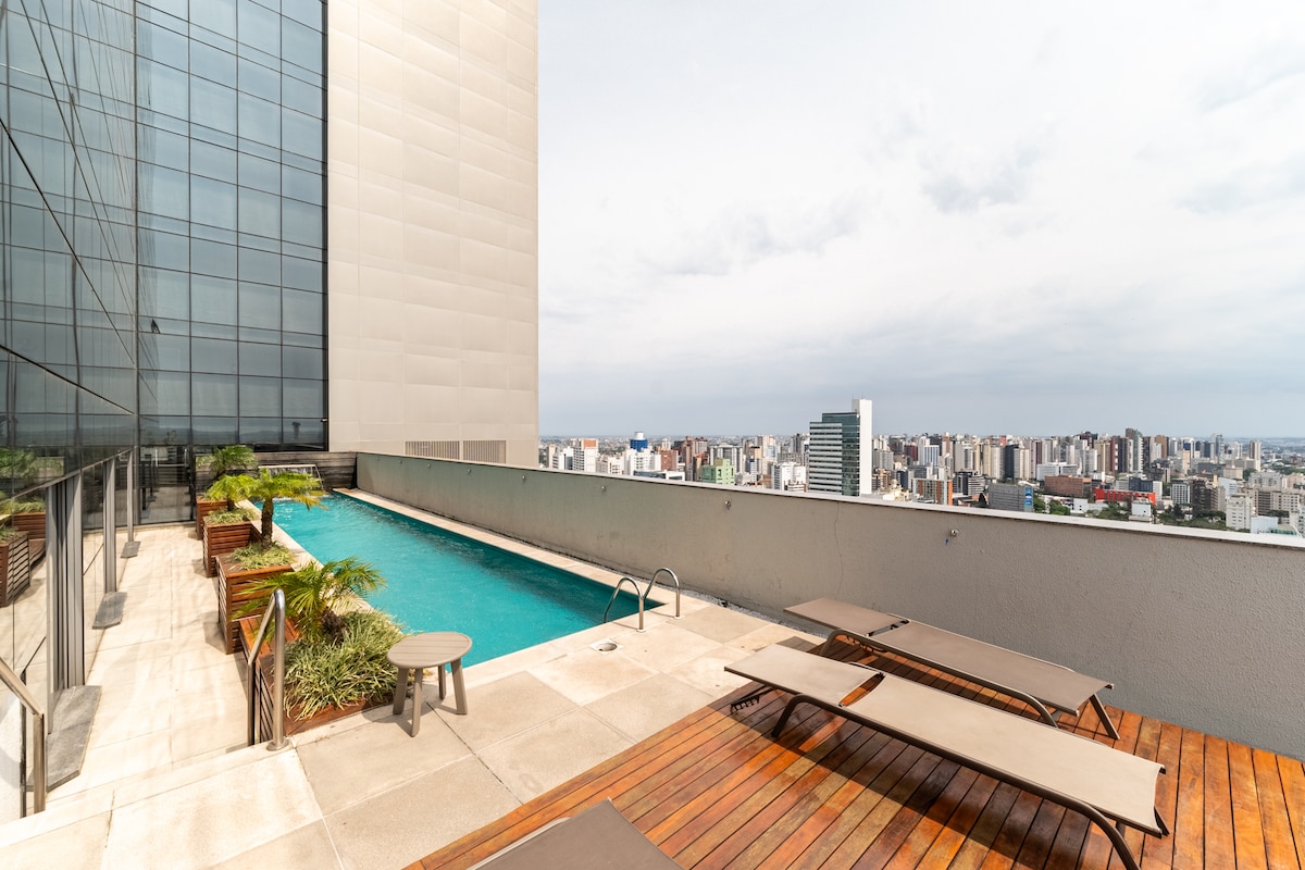 Studio localizado na melhor região de Curitiba (na divisa do Centro com o Batel e Água Verde), a 20 passos do Shopping Curitiba. Esse Studio no BF2211 oferece uma acomodação única, com sacada aconchegante para tomar café e com um sofá de jardim para curtir a paisagem. Temos wifi de alta velocidade, ar condicionado, roupa de cama e banho, cozinha completa com utensílios e garagem. O prédio é novo e tem piscina para nadar, academia bem equipada, co-working, lavanderia, etc. A portaria é 24hrs.