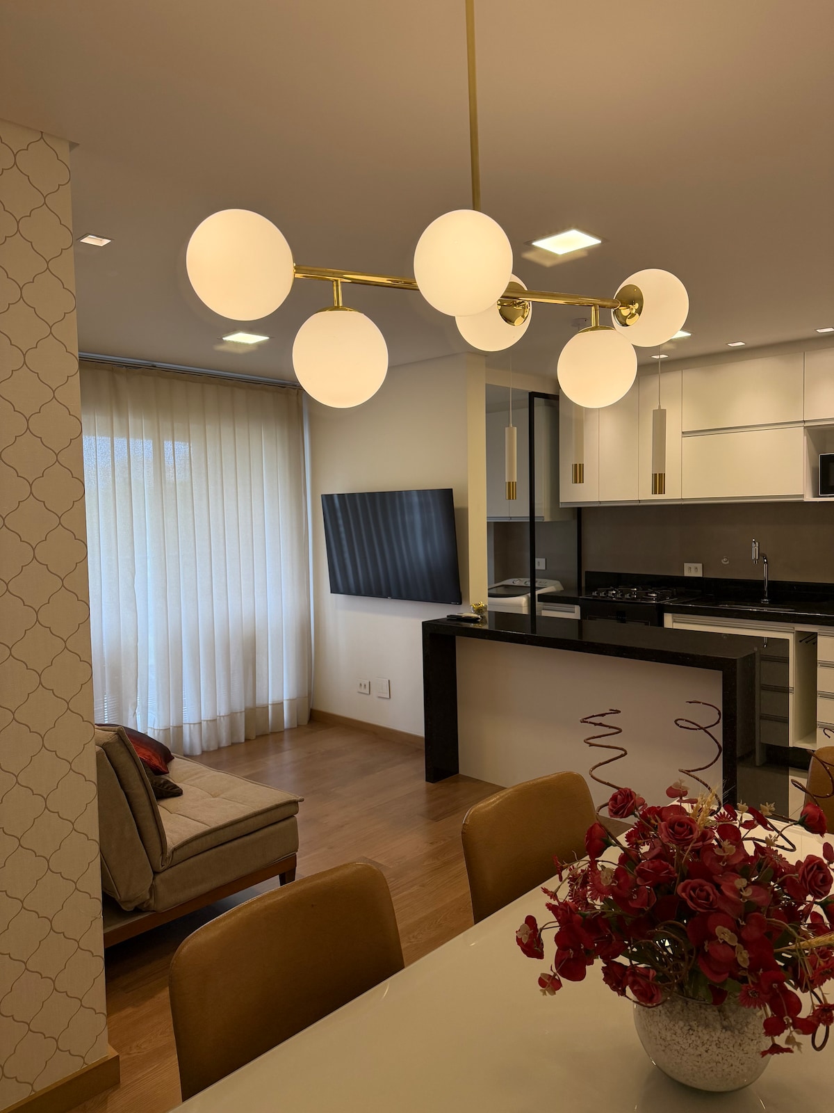 Beautiful apartment located in the heart of the city. Near the bohemian neighborhood Batel, this location counts on plenty stores and malls, such as Shopping Crystal and Shopping Pátio Batel, Rua 24 horas. Ideal for two people, it has a living/dining area, one bedroom, a full bathroom and a full equipped kitchen. The space also counts with: Wi-fi, Smart TV, Air conditioner hot and cold, hot and cold water in the kitchen and bathroom. We provide bedding and bath towels.