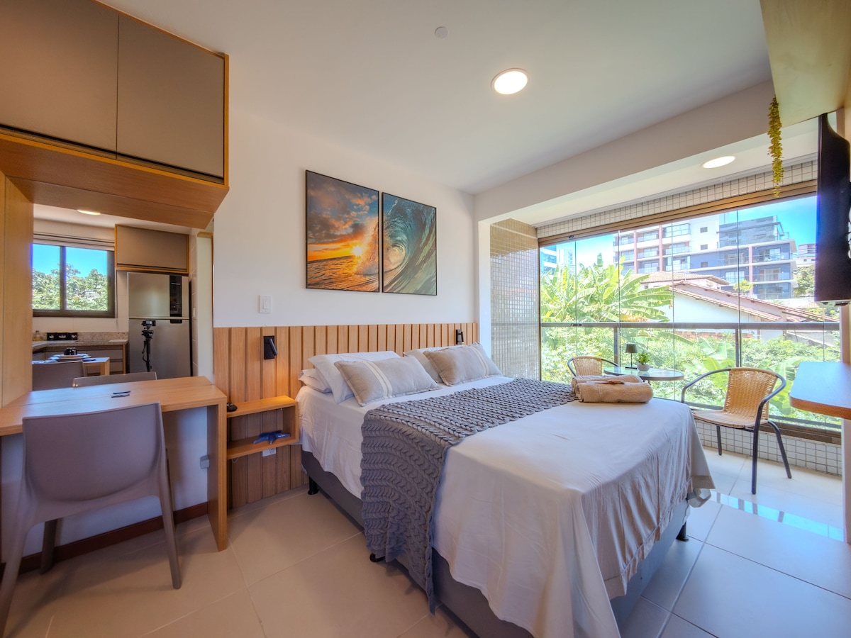 Hospede-se em um studio novíssimo, moderno e totalmente equipado! Desfrute de ar-condicionado, vista incrível e localização privilegiada: próximo a shoppings, centro de convenções, hospitais e metrô. Ambiente seguro, confortável e ideal para relaxar ou trabalhar. Completo, com wi-fi, smartv, fechadura eletrônica, máquina lava e seca, filtro e máquina de café expresso. Condomínio com piscina, academia, coworking, e garagem rotativa. Perfeito para quem valoriza bem-estar, praticidade e estilo
