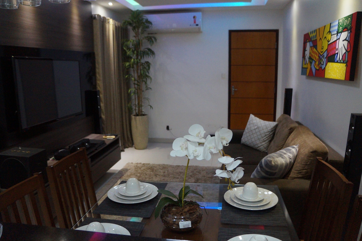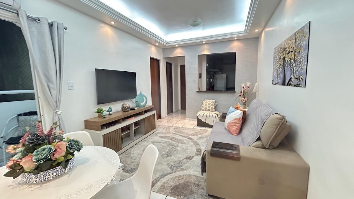 Apartamento com excelente localização, confortável, totalmente mobiliado, aconchegante, cozinha equipada com utensílios, sala e quartos climatizados, área de lazer com piscina e churrasqueira, várias opções de alimentação como padarias, pizzarias, churrascos e muitas outras opções.