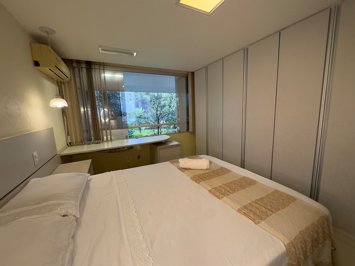 Studio moderno, confortável, localizado em região nobre de Brasília. Ambiente minimalista e aconchegante, inspirado na arquitetura modernista de Brasília. Vista ampla, para o Estádio Mané Garrincha. Um lugar tranquilo, arborizado, seguro, silencioso e próximo a lindos parques à beira do Lago Paranóa. Ao lado do shopping Iguatemi e a 15 minutos (de carro) da Esplanada dos Ministérios.