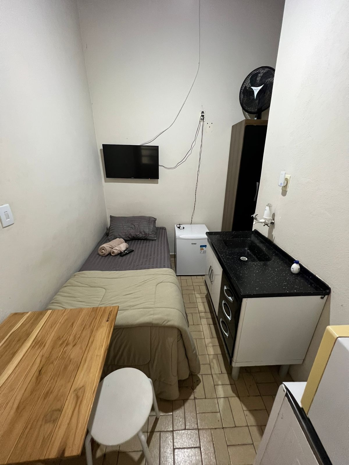 Espaço gostoso e aconchegante para individual ou casal. Portaria 24 horas. Ar condicionado no quarto. Localizado em frente ao shopping Colinas. Supermercado Tauste com ótimos preços bem pertinho, Assai atacadista e Pão de Açúcar. Dá para ir a pé. Tem também farmácia e padaria, próxima. Oba hortifrutis no bairro. Mac Donald na mesma calçada.