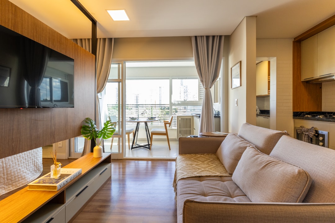 Studio novo c/ ar condicionado na melhor localização do bairro Jardim Aquarius, pague em até 6x sem juros! Moderno, aconchegante e perto de cafés, restaurantes e shoppings. Perfeito para casais, trabalho remoto ou quem busca conforto e localização imbatível. Localização privilegiada! A poucos metros de tudo que você precisa: • Carrefour a apenas 950 m • Pão de Açúcar a 300 m • Drogaria São Paulo a 99 m • Farma Conde Arena a 2 km