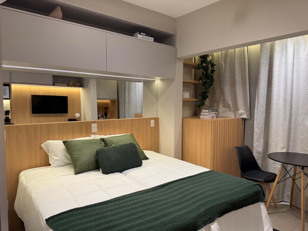 Bem-vindo ao seu lar longe de casa! Este charmoso estúdio de 23 m foi projetado para ser seu refúgio no meio da agitação de São Paulo. Cada detalhe foi pensado para oferecer uma experiência acolhedora e completa. E o melhor: você estará no Tatuapé, um bairro cheio de vida e com uma variedade incrível de bares, restaurantes e lojas .Relaxe na piscina após um dia de passeio ou comece a manhã com energia na academia. O estúdio perfeito para uma estádia inesquecível.