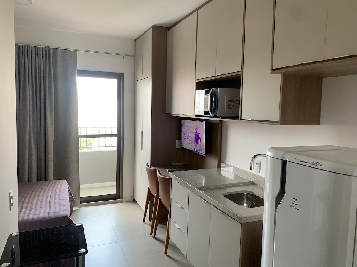 Bem-vindo ao seu refúgio urbano. Studio moderno e equipado perfeito para quem busca conforto e praticidade em uma das melhores localizações da cidade". Design compacto com móveis planejados, garantindo conforto e otimização. Cozinha equipada com utensílios essenciais para preparar refeições. Smart TV 50” com serviços de streaming. Colchão premium para noites de descanso perfeitas. Próximo a restaurantes, supermercados. Reserve agora e aproveite uma estadia inesquecível.