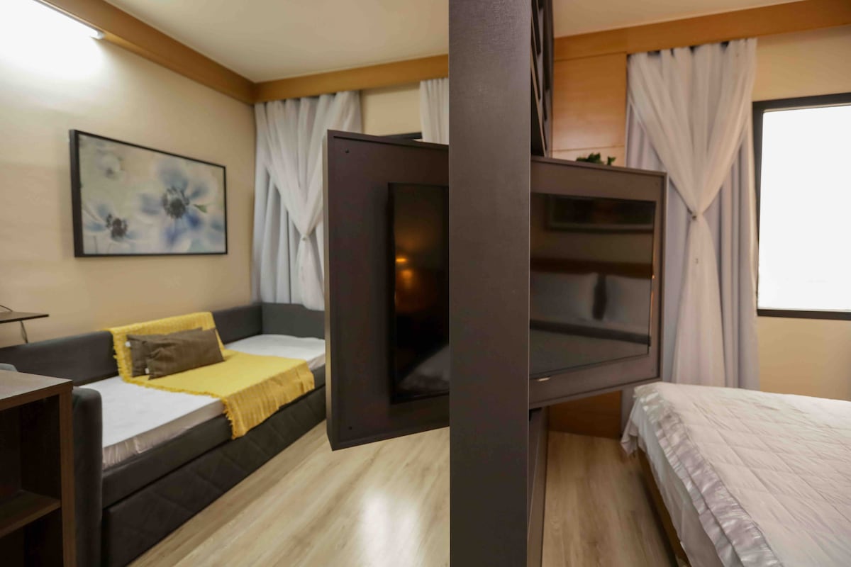 Relaxe neste espaço calmo e cheio de estilo, excelente localização, uma vista sensacional, ideal para duas pessoas. Ar condicionado, Wi-Fi, smart tv com canais digitais, cozinha equipada, fogão de indução, frigobar, piscina, estacionamento, academia. Próximo ao shopping Anália Franco, bares noturnos, farmácias, mercados e comércios próximos. À parte temos o restaurante do hotel com um ótimo atendimento.