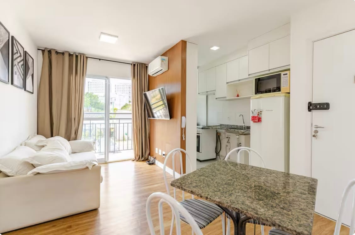 Hi Fully furnished apartment in the center of Campinas, with 24-hour self-check-in (you can come at any time). Ideal for tourism and home office. - Private parking nearby for R$25 per night. - Equipped kitchen with stove, refrigerator, utensils. Smart TV and bed linen/towels included. - 20 minutes from the airport, 5 minutes from the bus station, 8 minutes from São Leopoldo Mandic, 20 minutes from Shopping Dom Pedro. - Very clean and organized environment. - No visitors allowed, no garage.