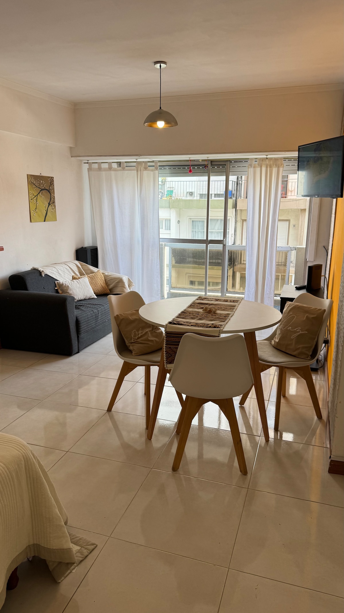 Enjoy this modern apartment with an excellent location, just steps from the beach and close to the main tourist attractions in Mar del Plata. Completely renovated with unique design details, it features a white quartz bar and an ideal area for remote work with a chair and USB port. We are a pet-friendly accommodation for small dogs. The building, located on Colón Avenue, offers night security, high-speed Wi-Fi, heating, and air conditioning.