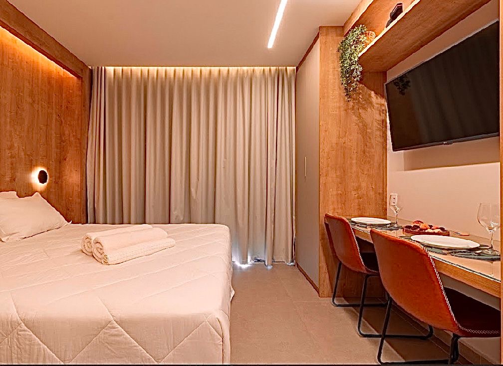 O Vista do Mirante é um Studio cheio de charme e conforto para casais desfrutarem de uma experiencia única. Conta com uma localização incrível no Centro Histórico de SP, dentro do Edifício que tem um dos mais importantes cartões postais de SP que é o Sampa Sky. Com vista de tirar o fôlego por estar no 27º andar e bem de frente para o Vale do Anhangabaú. Você fará belas fotos pois o espaço conta com decoração romântica, lindo balaço decorado, banheira c/Hidro e cromoterapia
