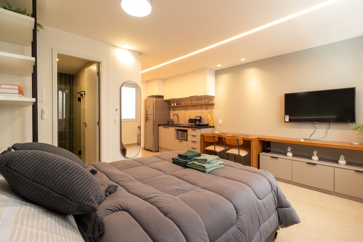Se hospede em uma das melhores localizações de SP, entre os bairros de Higienópolis e Santa Cecília, no coração da cidade. Studio em condomínio novo c/ segurança 24h e totalmente equipado. Viva uma experiência paulistana, tudo a pé: - Estação Santa Cecília (500m) - Santa Casa (150m) - Shopping Pátio Higienópolis (450m) - Universidade Mackenzie (650m) - Centro Cultural e Gastronômico: Rodeado por bares, cafés, restaurantes, teatros e muito mais - Mercados, padarias e farmácias a poucos metros