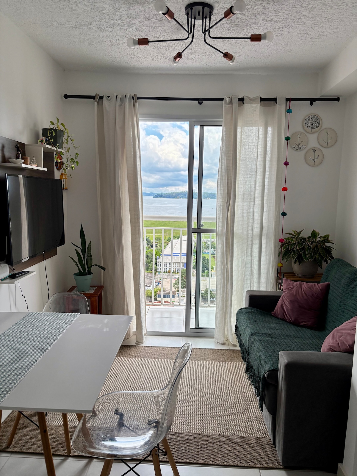 Apartamento aconchegante, ideal para famílias, casal e amigos. Possuimos ambientes amplos e integrados de sala, cozinha e varanda com ar-condicionado. Cozinha equipada e varanda gourmet com churrasqueira a carvão. Temos 2 quartos (Quarto 1 com ar e cama de casal, quarto 2 com 2 camas de solteiro), 1 banheiro. Vista incrível para o resort do condomínio com piscina de borda infinita. Localização estratégica perto dos principais pontos da cidade Vaga de garagem