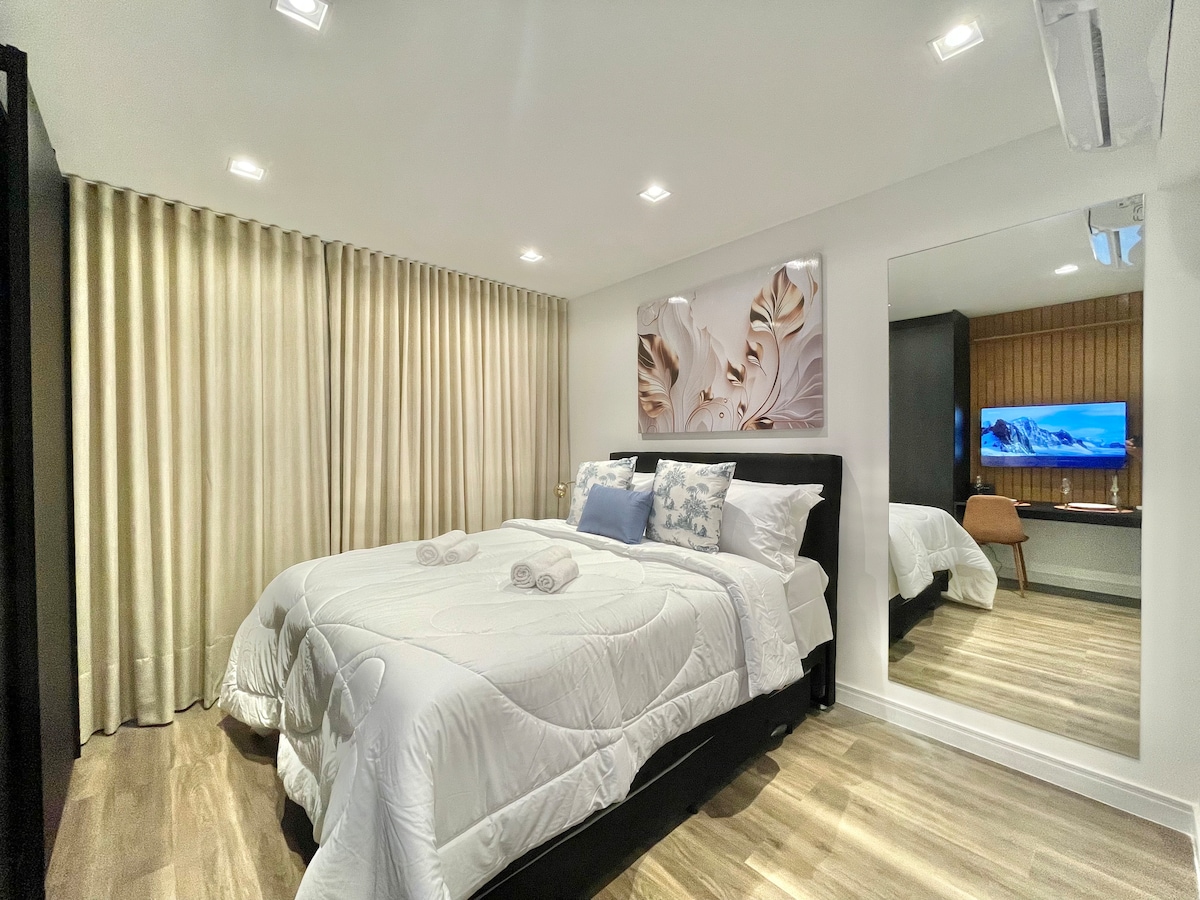 Apto 44m Nascente Quarto: Cama Queen + enxoval completo/Ar Condicion/Tv 50"/Guarda roupa/Cortina black out/corta luz/Proteção de tela na janela/Espelho Banheiro: Secador de Cabelo Sala: Ar Condicion/Sofá Cama 1.38 x 2.12m/Wifi 590mgbt/Tv 65"/Área de trabalho + cadeira/Mesa com cadeiras para refeições Cozinha: Geladeira/Purificador de água/Cooktop/Forno/Microondas/Air Fryer/Sanduicheira/Liquidificador/Panelas/Talheres/Ferro e tábua de passar/Vaporeto Extintor de Incêndio Varanda: Proteção de tela