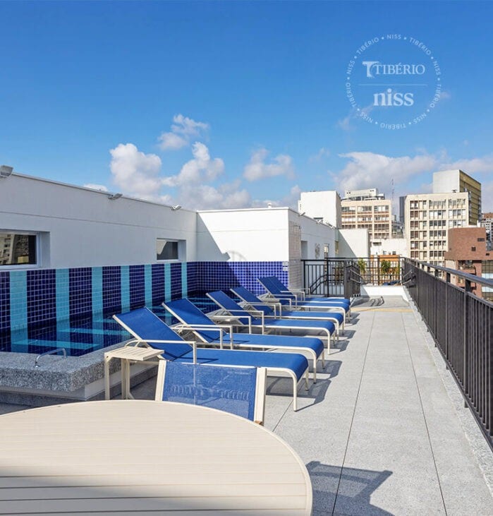 Studio na Rua da Consolação, perto da Av. Paulista, Rua Augusta, Mackenzie, Bairro de Higienópolis. Edifício London. Piscina, academia, saunas seca e úmida, estacionamento incluído, no coraçao de SP, a 400 m da estação de metrô , 4 min caminhando, Higienopolis- Mackenzie ( Linha 4 Amarela). O prédio foi projetado pelo arquiteto Jonas Birger que ganhou prêmio Saint Gobain. Tem uma piscina de borda infinita e raia de 50 metros que fica no 15. andar .