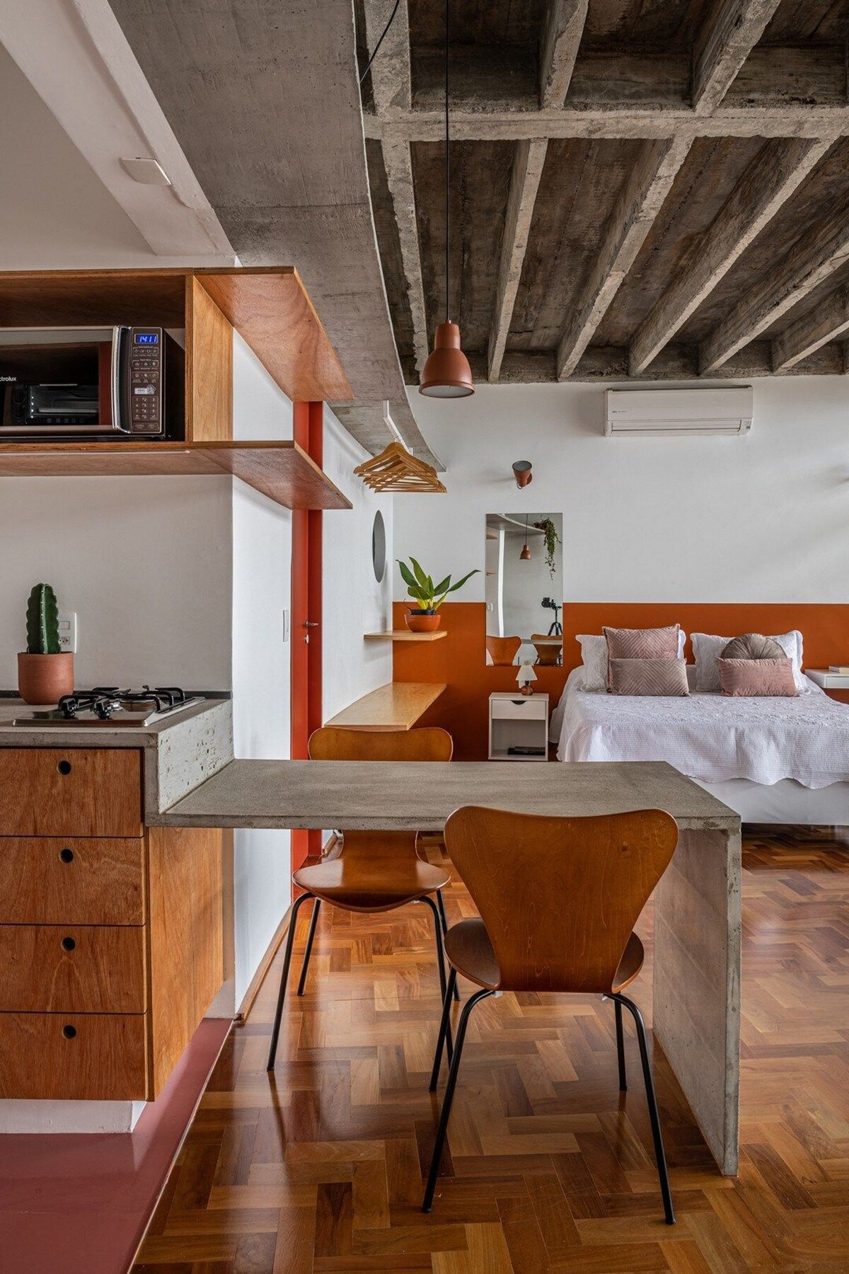 Stay on the 30th floor of the Copan Building with one of the most fantastic sunset views. This fully equipped studio has everything you need for an unforgettable stay in Brazil's most famous residential building. Located atop one of architect Oscar Niemeyer's masterpieces, this apartment was completely remodeled in a project by architect Teresa Mascaro, and is now also part of the AirBnB project in Copan.