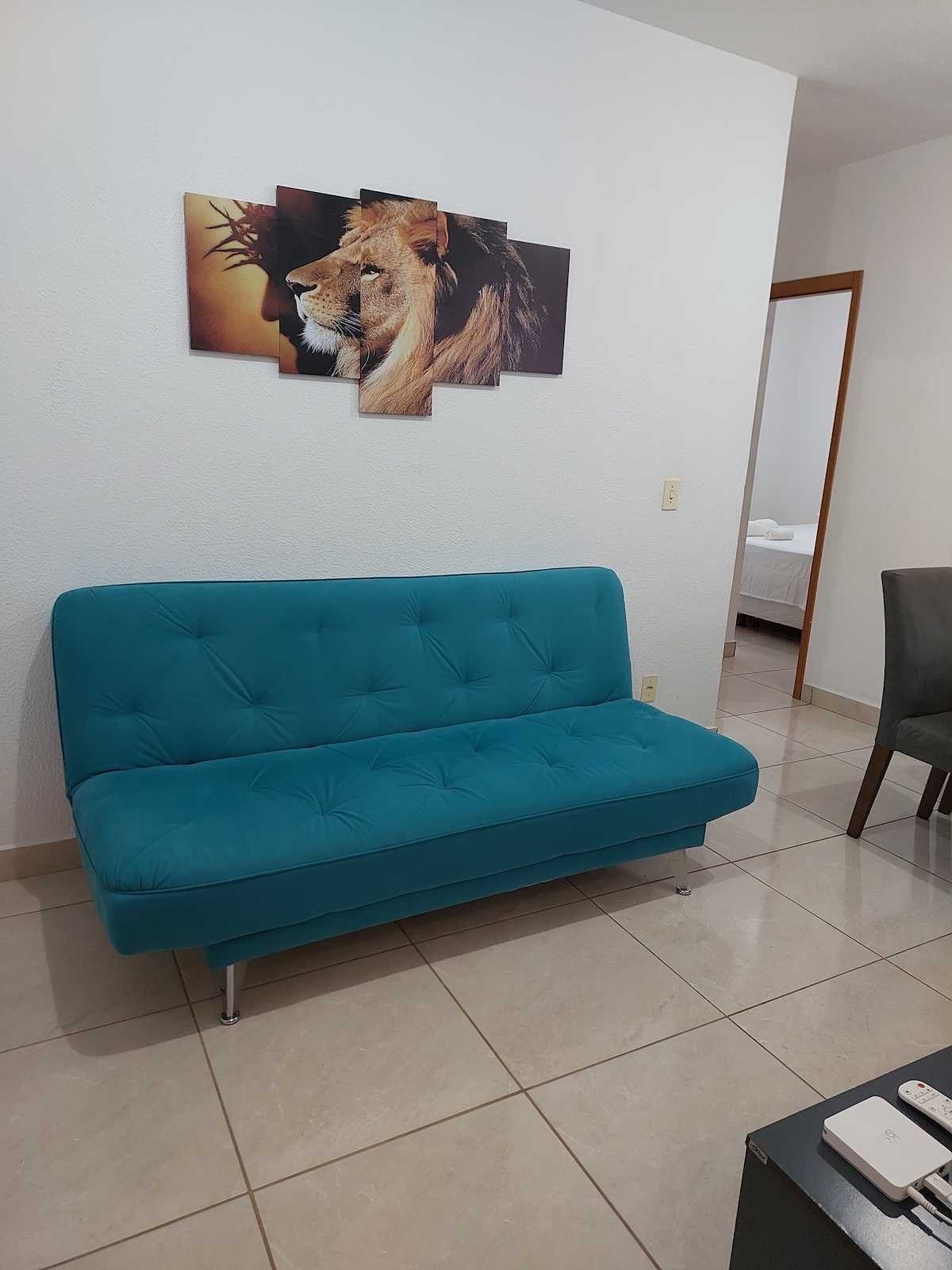 Apartamento de 40mts² , com uma vaga para carro, com os ambientes sala, sala de jantar, cozinha e lavanderia integrados, quarto 01 com cama king size e TV, quarto 02 com cama casal e armario, sala com sofá retrátil acomoda uma pessoa pequena ou criança. Banheiro com roupa de banho individual, alguns itens básicos. ☆Itens de cozinha (panela, talheres, copo, filtro de café...) ☆Tv ☆Geladeira ☆Micro-ondas ☆Maquina de lavar ☆Ferro de passar ☆ Mixer ☆Chapinha para cabelo Secador de cabelo