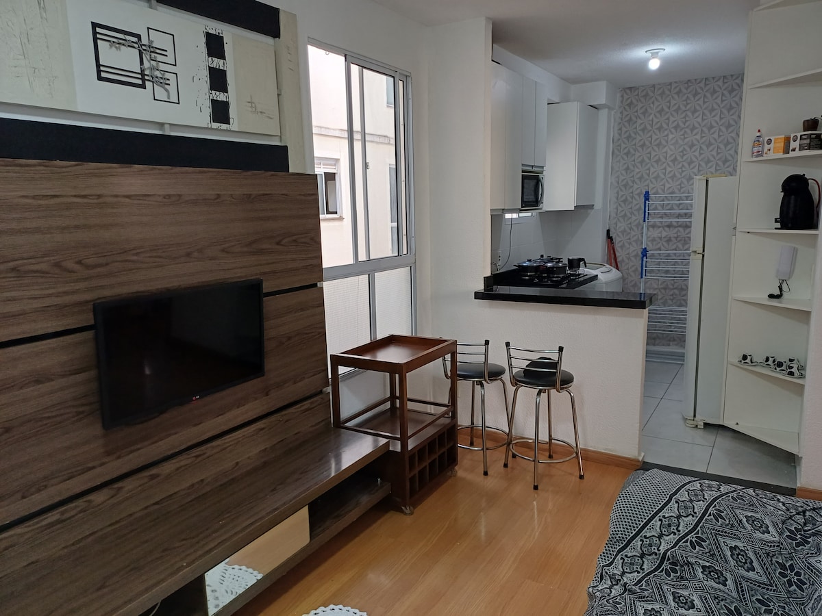 Studio apartment in an 18-story building, fully furnished, in the heart of Piracicaba, with 1 covered parking space, piped gas, water filter, appliances, intercom, 24-hour concierge, Wi-Fi, 50-inch Smart TV, electronic lock, security, and discretion. Close to markets, banks, bakeries, restaurants, churches, and shopping. Accommodates two guests with a double bed and an extra single mattress for a child. Small pets are welcome.