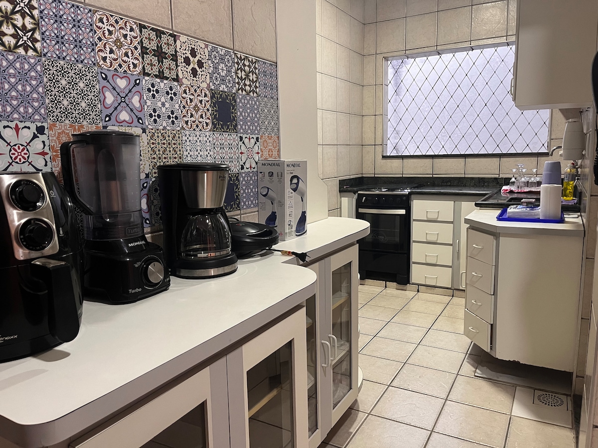 Estadia aconchegante e privativa em Vitória, com conforto e praticidade para viajantes a trabalho ou lazer. Possui uma cama de casal e duas camas de solteiro, mesa de jantar, frigobar, TV e ar condicionado. Restaurantes e Comércio: Brizz: 230 m Shopping Vitória: 200 m Quiosques: 1,2 km Pontos Turísticos: Aquaviário - Praça do Papa: 300 m Praia Curva da Jurema: 1,2 km Parque da Prainha em VV: 1,5 km por aquaviário Centro de Vitória: 5,9 km Mercados: Box Enseada: 160 m São José: 700 m