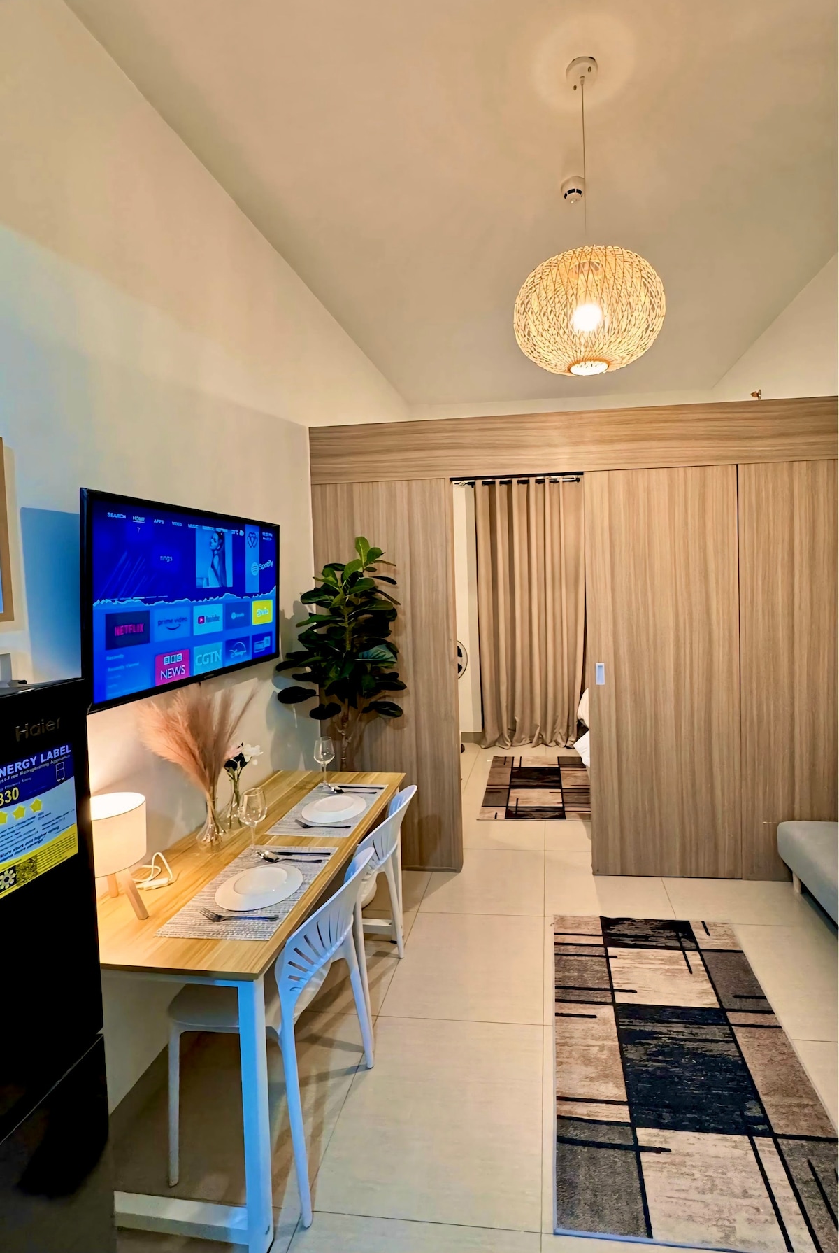 This furnished condo provides a great modern resort lifestyle while having a relaxing staycation that makes you feel like you're in an oasis considering it's in the middle of a business district, making it accessible to all nearby establishments, offices, entertainment areas, and a distant away from the NAIA airport. FREE NETFLIX usage and fast internet speed of 50 Mbps.