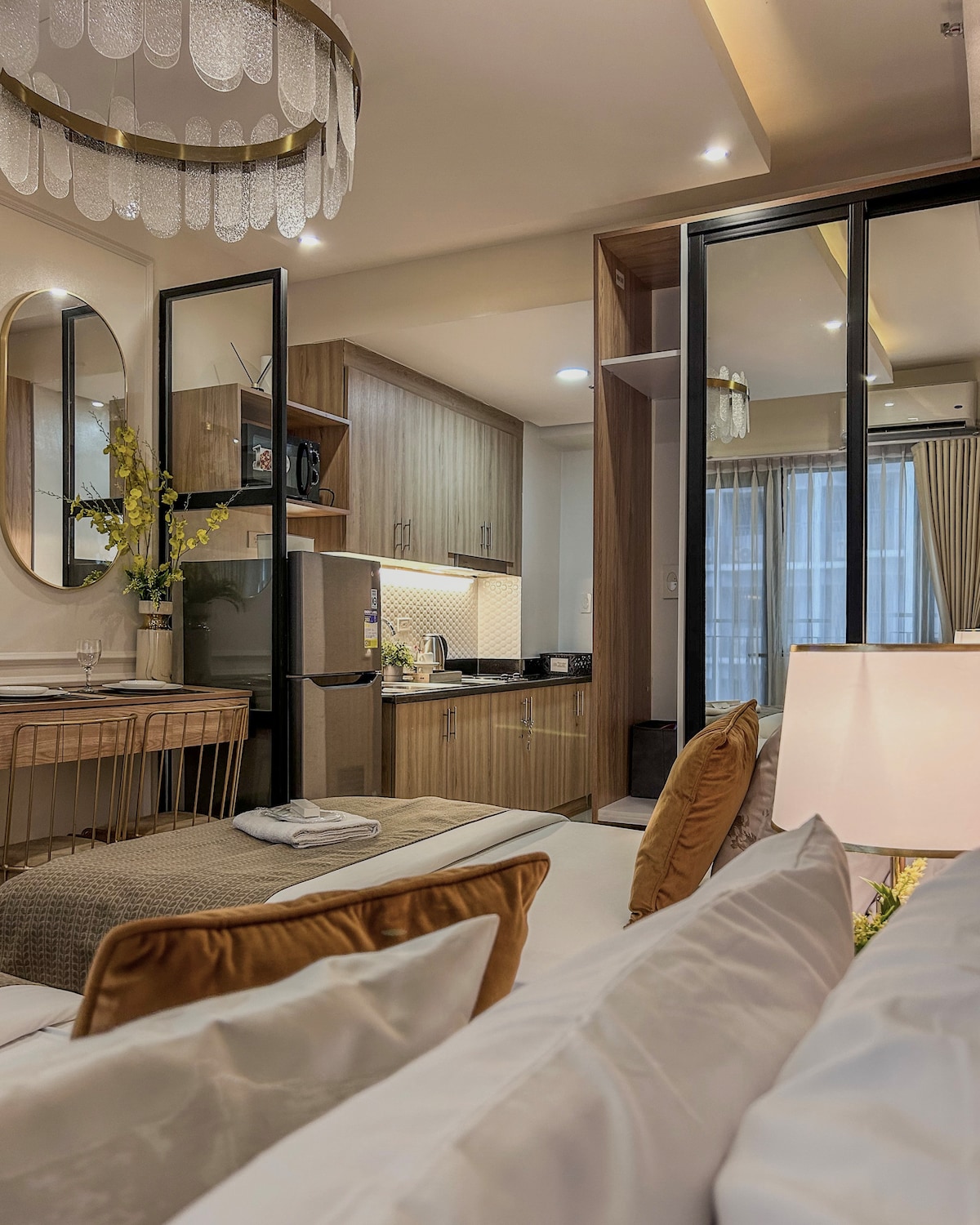 From the moment you enter the door, you will love this large hotel-quality studio apartment with it's comfortable King Bed and a Queen Sofa-bed, which can accomodate up to 4 guests; with a full kitchen, and in the best location in Makati. We have recreated a second copy of our best listing which ranks among the top 5% of homes and has 150 reviews. Book now to secure your dates, our team is fast to respond and we want to help you have the best trip to the Philippines.