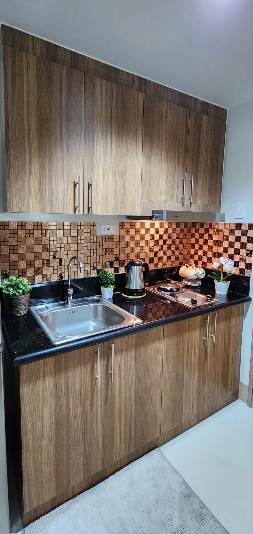 Welcome to our minimalist-designed 1 bedroom unit with an amazing pool view. Relax in the airy living area with our smart TV, cook your meals in our fully-equipped kitchen to dine-in or simply enjoy moments looking out the balcony. But most importantly, sleep soundly in our comfortable beds. Located at walking distance to Ikea, SMX Convention Center, MOA Arena and those surrounding the Mall of Asia area. Indulge in the nearby restaurants, cafes and convenient stores just outside the condo.