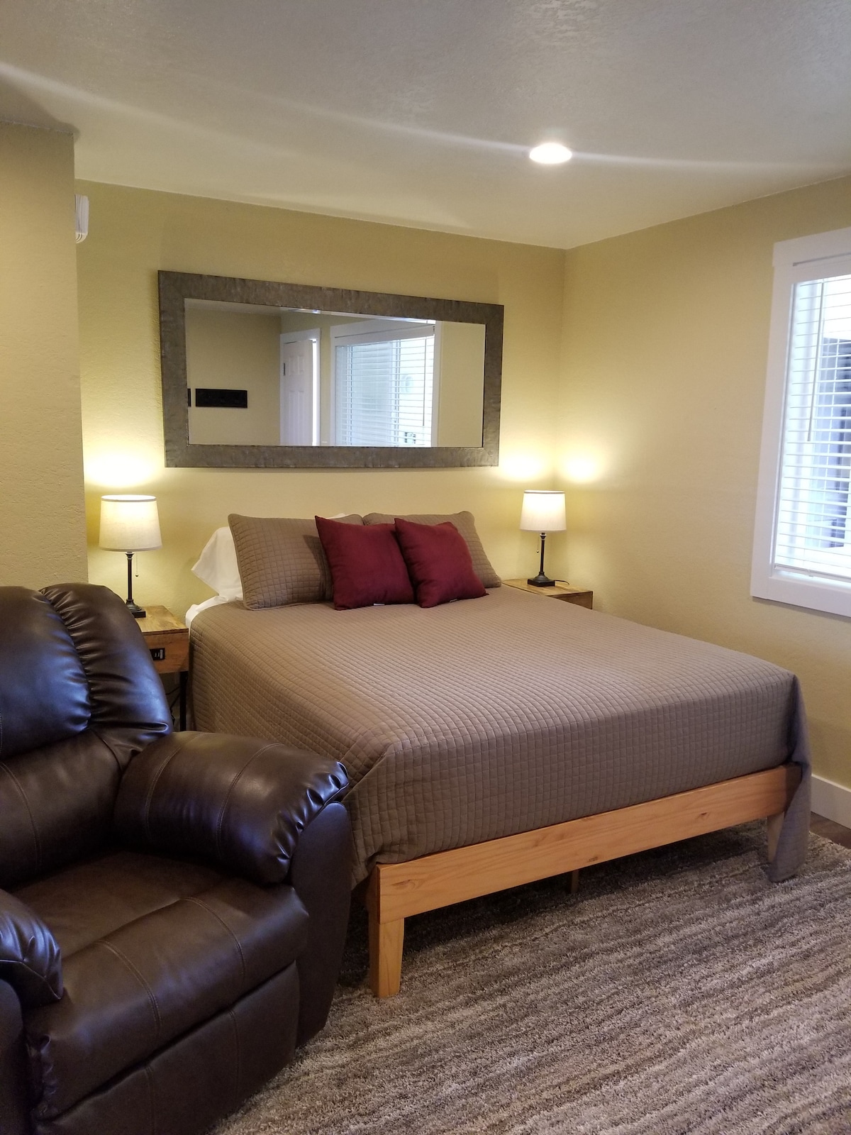 Whether you're traveling down the Pacific Coastline, coming to visit a child at Southwestern Oregon Community College, or here on business, this is a great place for 1-2 people. The studio is located in a residential area close to Cape Arago Highway and stores. Private, newly remodeled, super clean, comfortable queen bed, fully-equipped kitchen, 55" Flat Screen Smart TV, full bath. This Studio is on a second floor and guests would be required to climb stairs to get to it.