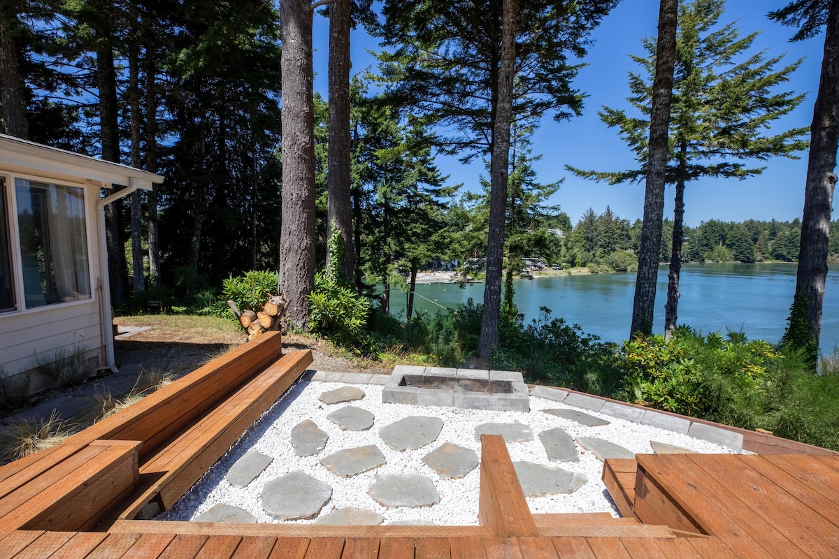 Enjoy beautiful views of the bay and wildlife including deer and a variety of birds from the large picture windows that welcome you to Bayview Cottage. Gather around the waterfront fire pit after a day of adventures to enjoy s’mores and stunning sunsets. Everything you’ll need to prepare a gourmet meal or a quick snack is provided in the fully equipped kitchen including spices, bakeware, a variety of kitchen appliances, and other cooking essentials. All three beds feature memory foam and cozy bedding to provide a wonderful night’s sleep. The house is fully stocked with Smart televisions including cable, high speed wifi, a washer and dryer, toiletries, and plenty of books, puzzles, toys and games. Bayview Cottage is an ideal home for families or a group of friends enjoying the beautiful Southern Oregon Coast! Bayview Cottage may also be rented in conjunction with Bayview House, a larger home that sleeps 4 guests and is located right next door. Consider renting both homes together for larger parties or a gathering where families may want their own space. Together both homes can accommodate parties of 8 and each home has a full kitchen and a washer/dryer! This waterfront property is great for cozy evenings around the firepit. During low tide clam from the property or take a nature hike around the bay. Large picture windows provide views of the incredible sunsets while staying warm and cozy indoors. Along with the cottage, enjoy the deck with lawn chairs as well as the waterfront fire pit in the private backyard. I am available by phone, text or email at anytime during your stay. I live nearby if you need anything while you are at the cottage. The cottage is located just a few blocks from Downtown North Bend, a small coastal town with shops, restaurants, antique stores and pubs. Located at the end of a quiet road next to a nature park providing ample opportunity to observe wildlife including deer and many birds. A short drive to several beaches and sand dunes for a day full of outdoor adventures. Plenty of parking for your toys including boats and trailers is available. World famous Bandon Dunes Golf Course is less than a 30 minute drive away! Conveniently located just a few blocks off of the Scenic Coastal Highway and a quick 5 minute drive to the North Bend airport.