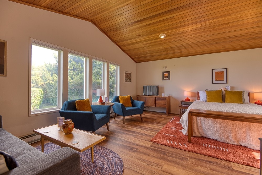 #StayinMyDistrict Cape Arago Ocean View Suite! Oceanfront Private guest house features sweeping views of the ocean & direct access to Lighthouse Beach. Located on a Pointe overlooking the sea, with large windows & views for miles. Guest house was designed w/ guests comfort in mind. Enjoy local hiking, Close to Charleston & Coos Bay. 1 KING bed/1 bath, w/ pullout sofa, Sleeps up to 4, Stocked Kitchenette, Grill Outdoor space w/Ocean views, beach access, grassy yard, fire pit, & comfortable seatin