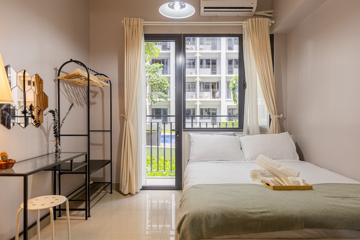 Welcome to this simple yet elegant Muji-inspired condo unit situated in 3rd Floor of Shore 2 Residences Tower 2 in Pasay City which offers a cozy ambiance with a stunning pool view and green scenery of SMDC landscapes , providing guests with a serene and rejuvenating place to stay. - Walking distance to MOA & Manila Bay - Surrounded by Starbucks, Watsons, AlfaMart and other convenient stores for your necessities - Near NAIA - Implements strong security measures for your safety