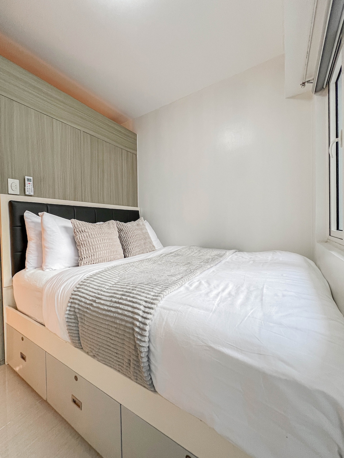 Stay cozy at Terra Mysa, a warm urban-industrial condo just minutes from MOA, SMX, and NAIA 🍃 🎮 Unwind with Netflix, PS4, card and board games, and fast Wi-Fi, or get work done in the comfy desk area. Cook in the fully equipped kitchen, relax in the cozy bedroom, or enjoy coffee on the balcony ☕️ Perfect for staycations, remote work, or quick city getaways — this is where comfort and calm meet right in the heart of Pasay 🤎