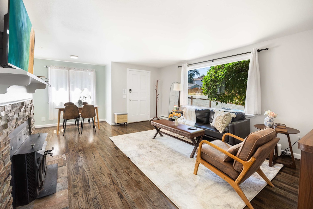 A sweet cottage filled with love and serenity. Warm, cozy, elegant, and easeful. This delightful space will fill you with joy and comfort. Made for a very special overnight, and with everything necessary for a longer-term stay. Fully remodeled, everything is new, and a heat pump with air conditioning to get you at the perfect temperature! A full backyard, and lots of room for our four legged little friends. You will be so happy you stayed at A Birdie’s Nest. Welcome, and happy nesting!