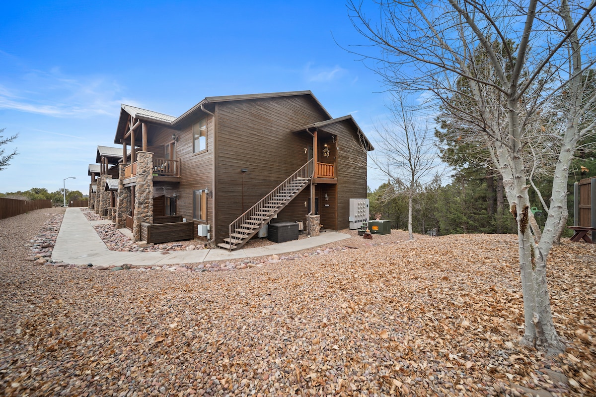 This rental is right between Showlow and Pinetop. The woodsy cabin is perfect for an individual, couple as well as small group or family. The cabin is pet friendly. The upstairs loft is a hit with children and additional sleepers. Guests may access the clubhouse and it’s immenities. The two seating areas inside as well as outdoor firepit allow for diversity of gathering. The community is quiet, friendly and highly wooded. Smart tvs and starlink Wi-Fi, and Firepit. Central ac and heating.