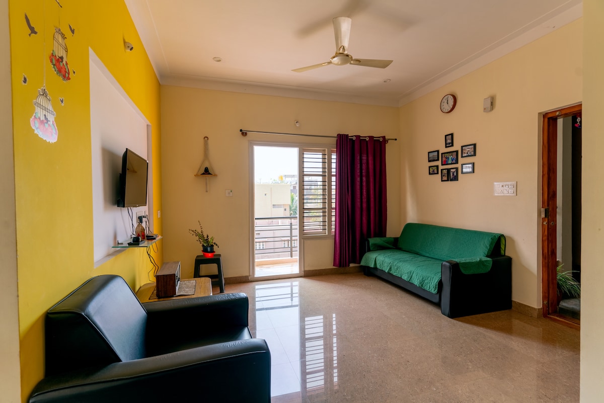Soak up to the combination of modern and vintage charm of the newly constructed house on the 2nd floor in a calm area in the Palace city of the Mysuru. Moodala Mane a place where you can experience cool breezing, feel like at home and a very good hospitality.