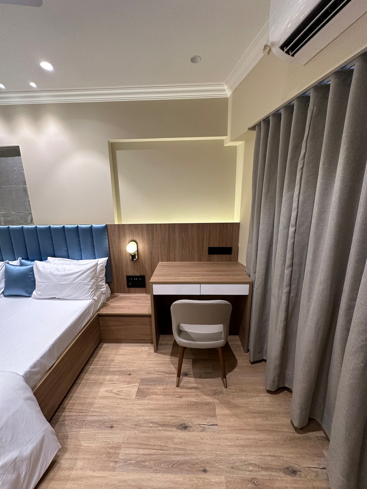 Experience the perfect blend of luxury and comfort in this beautifully spacious 2-bedroom apartment. Ideal for business travellers & visitors to BKC, the apartment offers a serene atmosphere with beautiful tree-lined views from every window – your tranquil retreat in the city that never sleeps. Centrally located, this contemporary haven promises a relaxing environment while you explore Mumbai. The apartment is: - 8 minutes to the Domestic & International airport