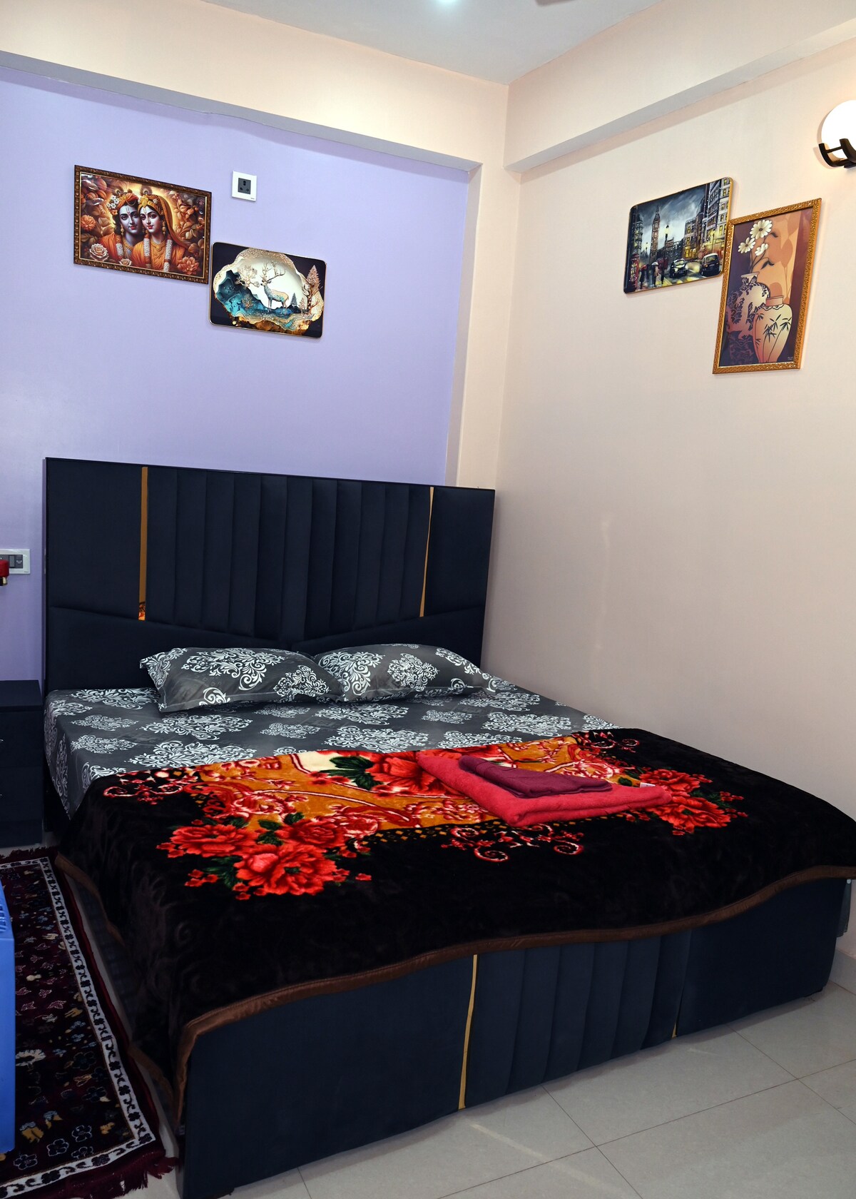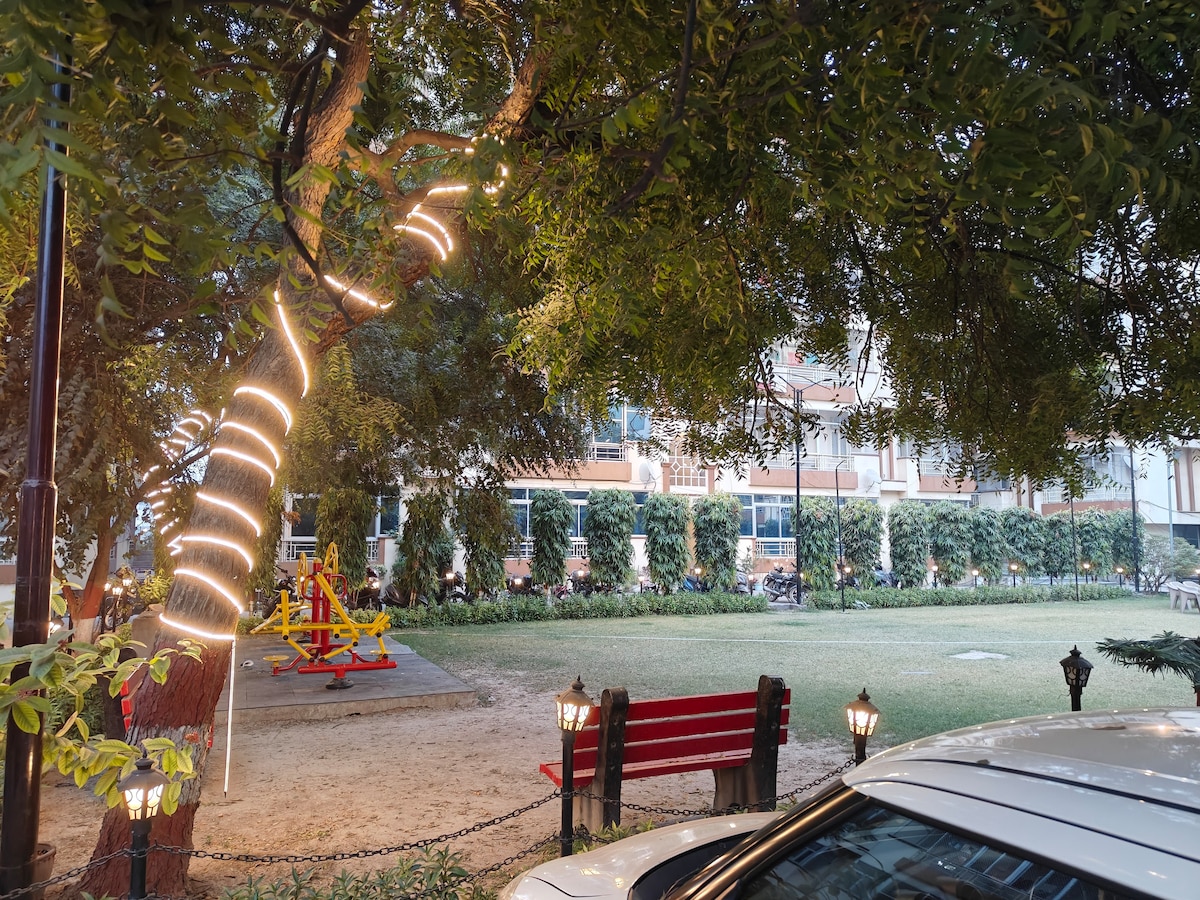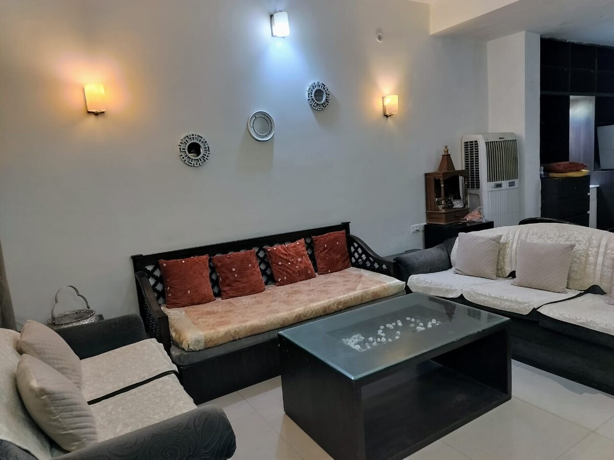 Luxurious, Comfortable & Peaceful Stay in this centrally located 3BHK fully furnished apartment facing the main road with all the amenities available, safe gated apartment with 24/7 security and a Super Store just outside the apartment. 10 mins from station and 15 mins from Kashi Vishwanath Temple.