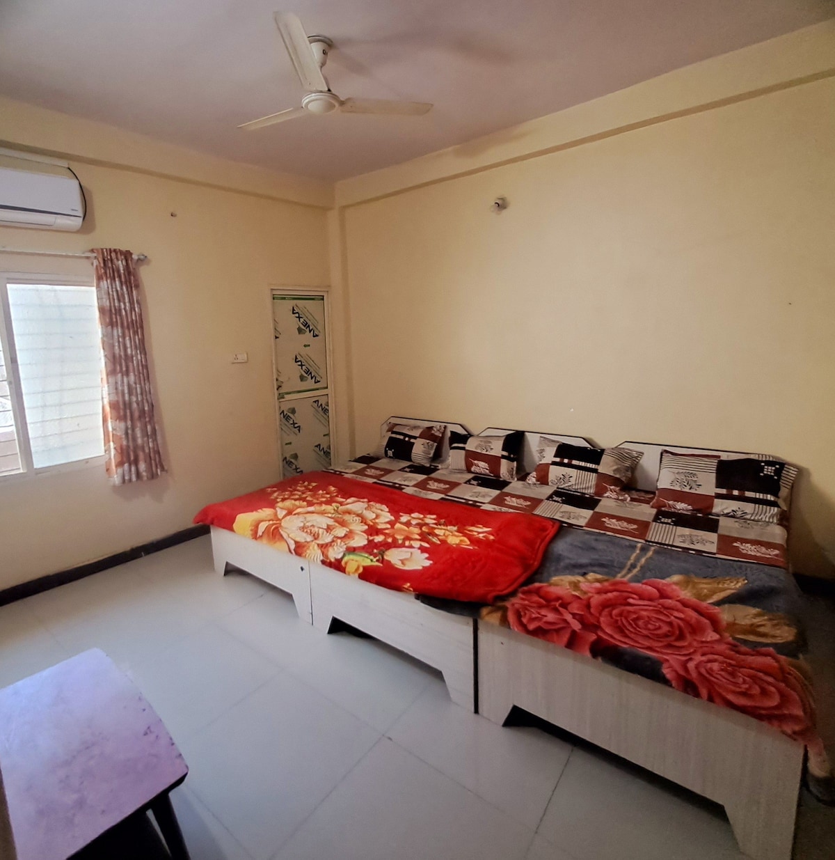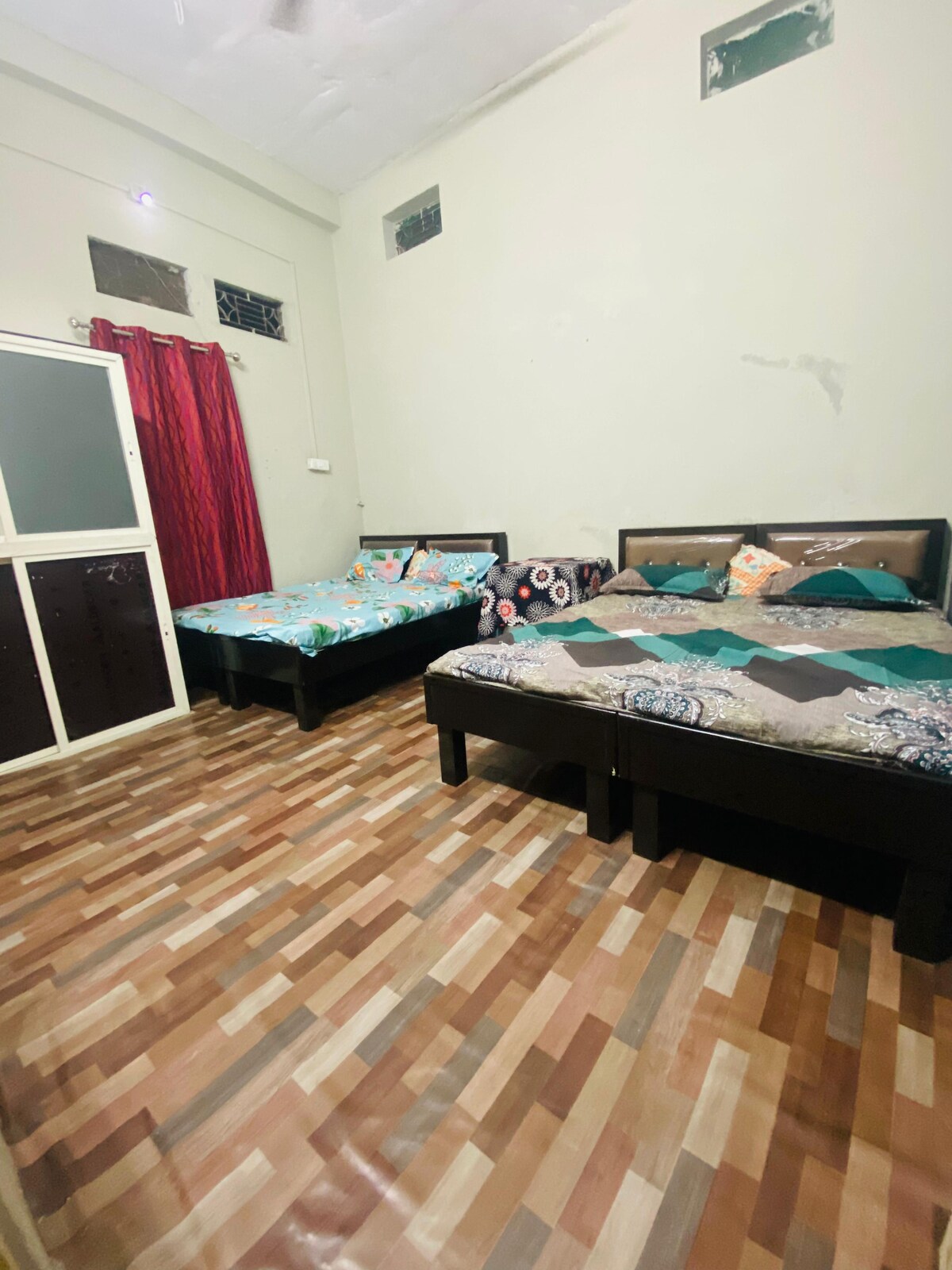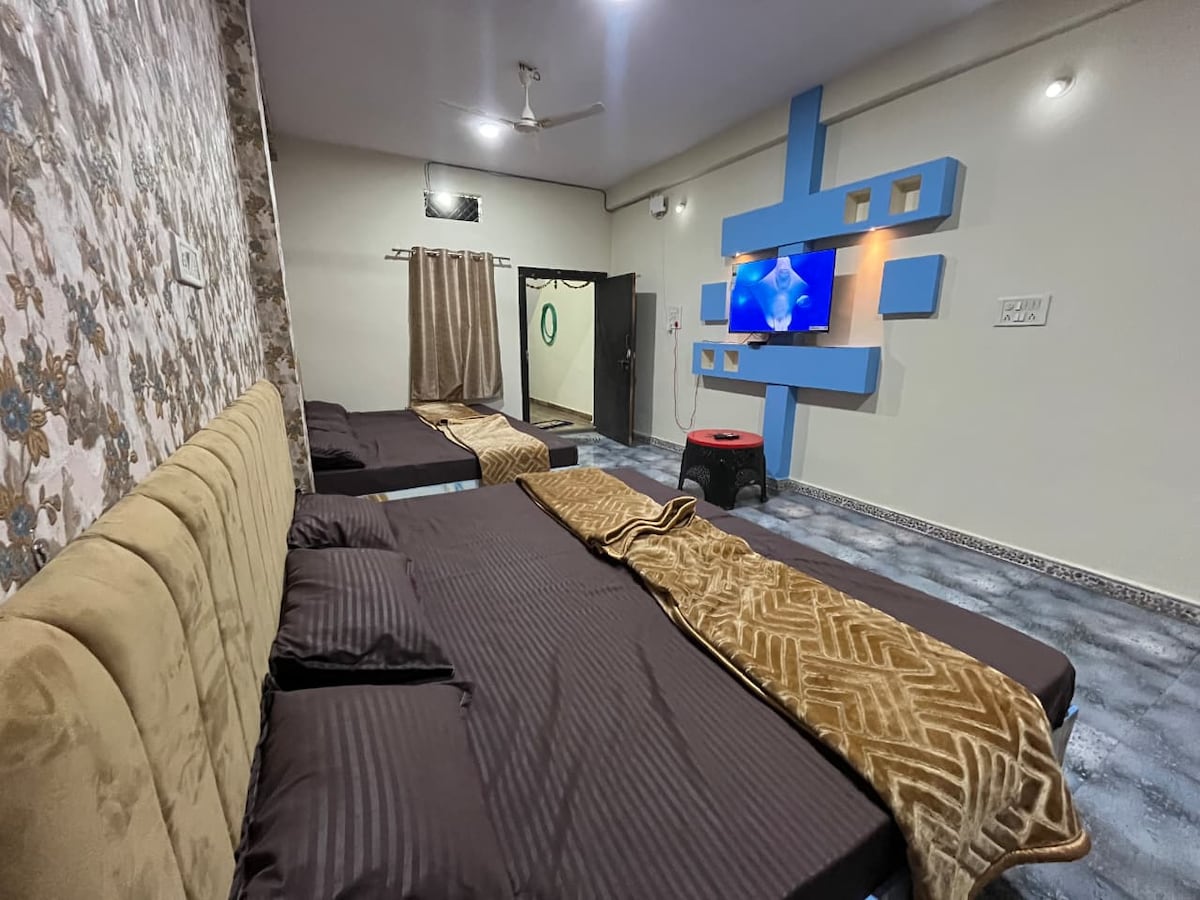 Comfortable 2BHK Stay Near Mahakaleshwar Temple – Ujjain Ideal for temple visit Just 3 km from Shri Mahakaleshwar Temple, perfect for pilgrims and tourists visiting Ujjain. Spacious 2 Bedrooms with Attached Bathrooms Clean, well-maintained rooms Comfortable beds for restful sleep Private attached bathrooms in both bedrooms Large Living Room Area with single bathroom Cozy sofa seating 2 additional single beds (ideal for families or groups) Fully Functional Kitchen Basic cookware and Gas