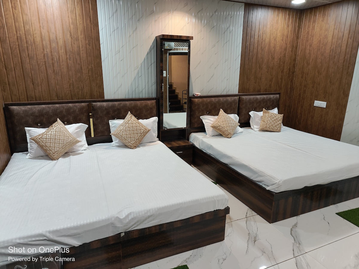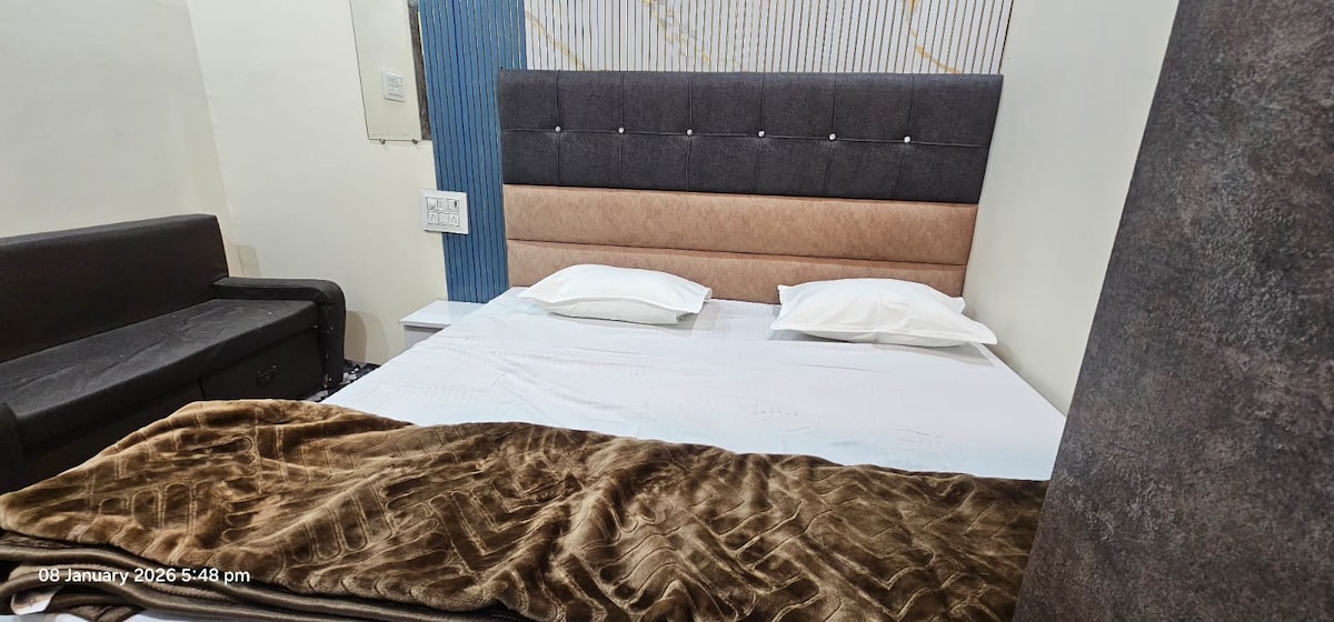 Budget-Friendly Family Stay Near Mahakaleshwar (900 m) Enjoy a clean, cozy, and comfortable stay at our guest house, just 900 meters from Mahakaleshwar Temple. Ideal for families and pilgrims, the room is well-maintained and affordable. Located in the main market area, with many eateries and shops nearby. Amenities include AC, Wi-Fi, geyser, clean bedding, and a peaceful environment—perfect for a pleasant, safe, and convenient stay in Ujjain with easy access to local transport and attractions.