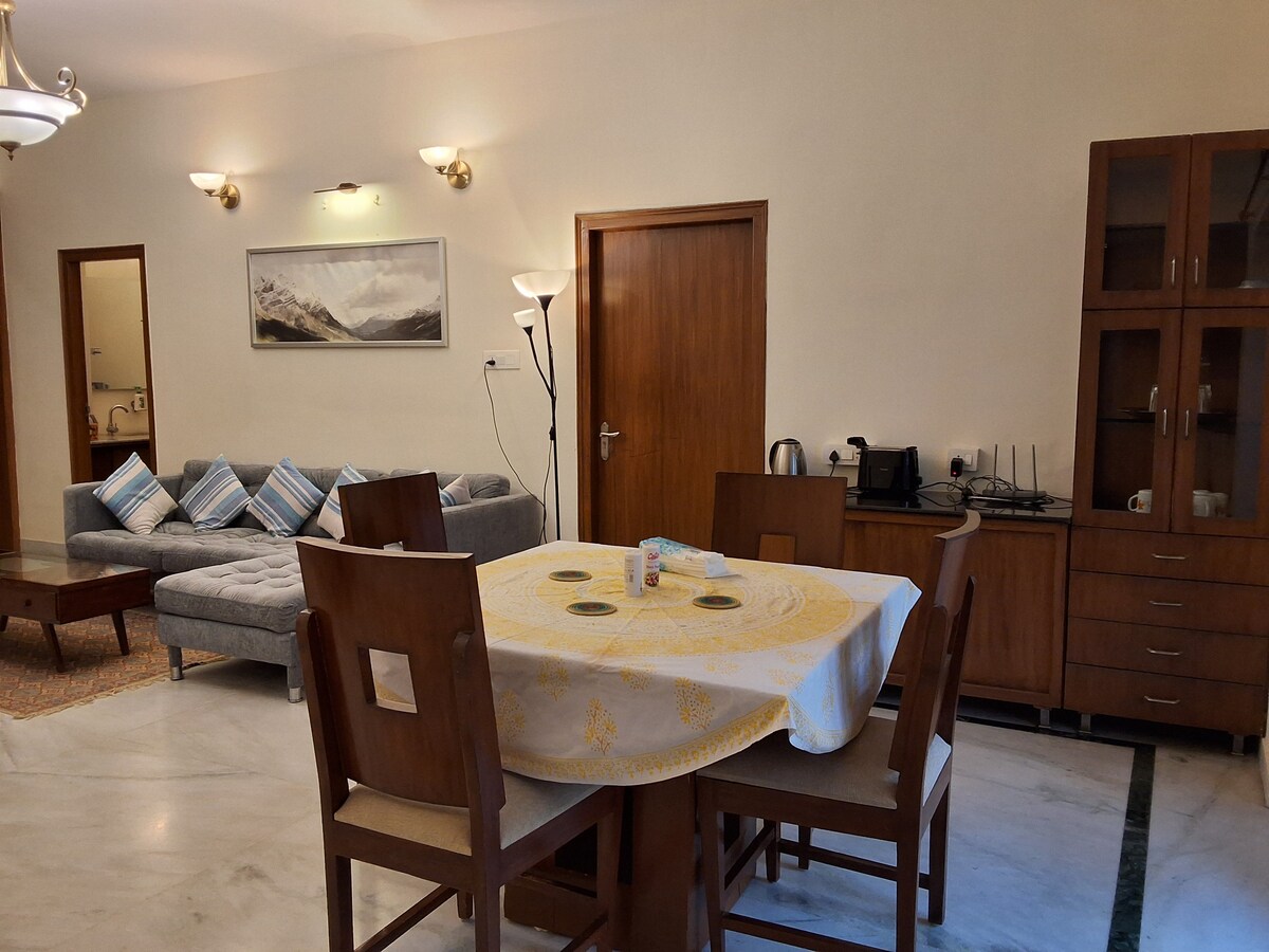 Welcome to THE VINTAGE GROVE Step into a premium vintage-themed 3BHK where old-world charm meets modern luxury. More than just a stay, It is your refined city escape. Located in a prestigious neighborhoods, this thoughtfully curated home is perfect for families, friends, and business travelers seeking space, style, and comfort. With rich vintage aesthetics, cozy corners, lush indoor greenery, and a warm-white glow that feels like golden hour -- every detail is crafted to elevate your stay.