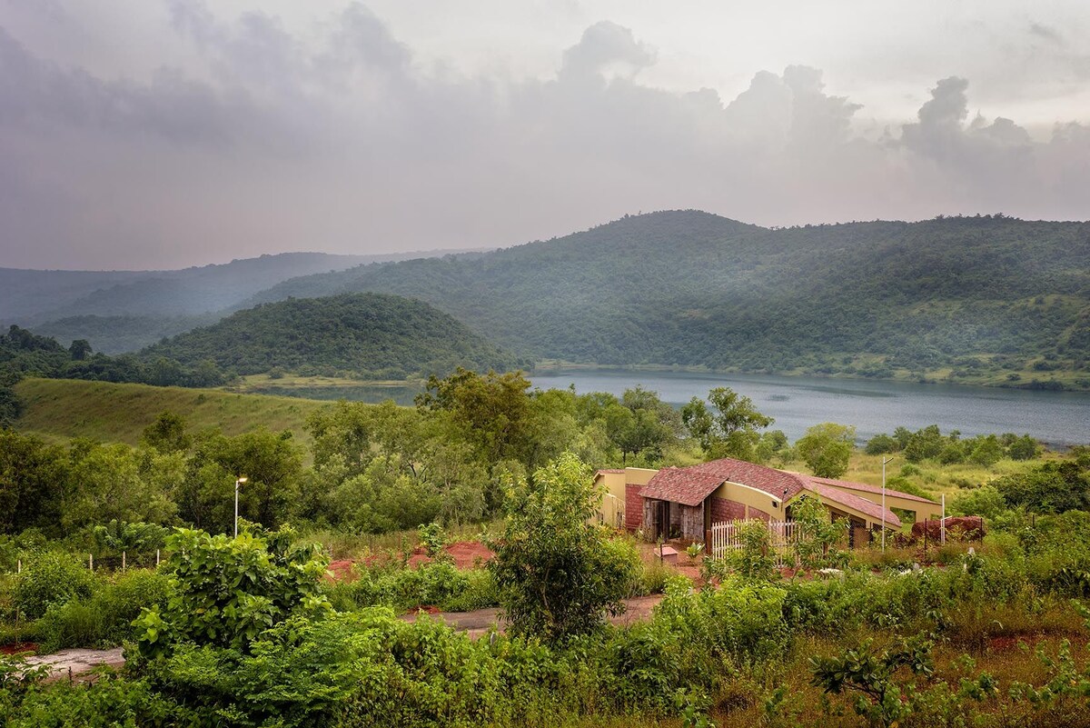 Surrounded by the beautiful verdant hills, accompanied by the fresh Sahyadri ranges stream running its edge offers a blissful sanctuary away from the chaos of urban life. At our quiet place, you are embraced by the rustling of leaves, the melodious bird calls. The unique, warm-toned, earthy finishes complement whitewashed walls to create a calm atmosphere. Make the most of the tropical weather spend your day floating in pool, walking barefoot on the lush, beautifully manicured lawn.