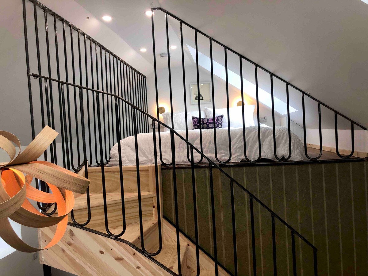 Romantic luxury loft for two on a 40-acre private estate in the Wye Valley National Landscape. Perfect for honeymooners, stargazers, proposals, anniversaries, or milestone moments. Enjoy panoramic Mork Valley views through the feature arched window, vaulted oak beams, and a cozy fire pit (logs & marshmallows incl.). Includes a generous welcome hamper and exclusive access to our dark skies, meadows, stream, and woodland. A peaceful, magical retreat with high-end, curated experiences available.