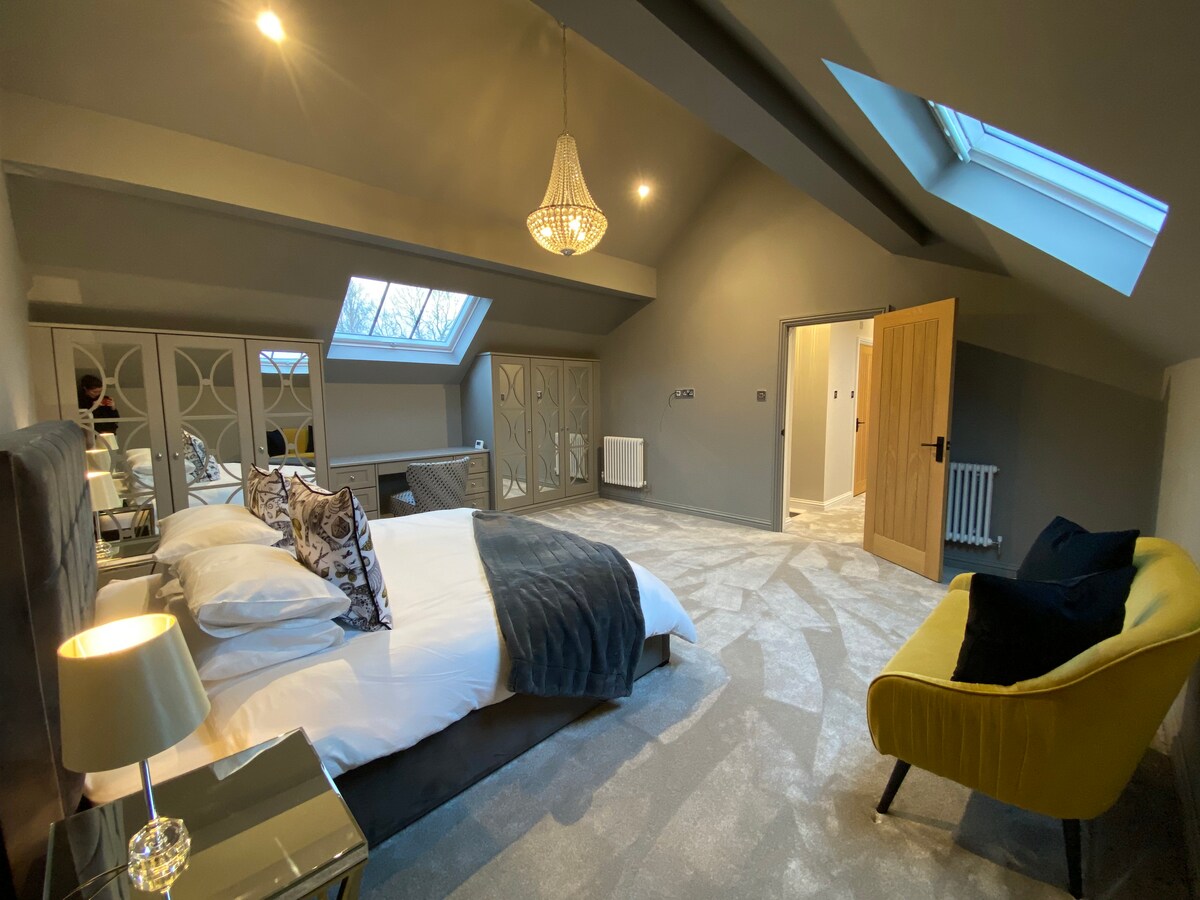 Newly renovated barn conversion … known as the coach house has a high end contemporary style, featuring a copper bath, garden hot tub, underfloor heating &outside eating area. The coach house boasts a private two story barn conversion with parking, two bathrooms, wet room & a gorgeous steel staircase. Ollie Palmer home on welcome to Wrexham:)Sleeps up to 4 guests, has a kitchen for you to be self sufficient. Located 1.3 miles from Wrexham FC (town centre) 📍