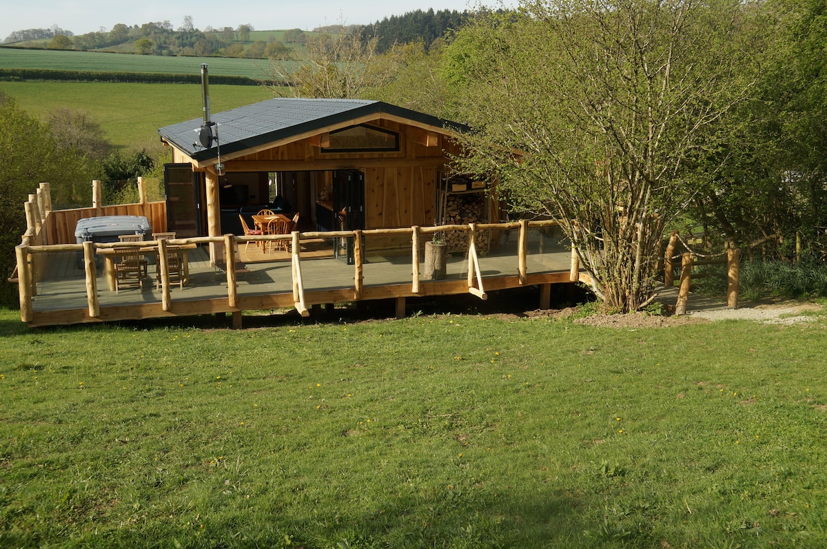 Our handcrafted en-suite wooden cabin is located within a small wood on the grounds of working sheep farm with an uninterrupted view across the valley in picturesque Shropshire. It has everything you need to retreat from the real world, whether it's for a cosy night in, in front of the log burner or a chance to sit and stargaze on the deck. There is an abundance of walks right from your doorstep, you're even lucky enough to have the Offas Dyke within a stones throw from the Cabin.