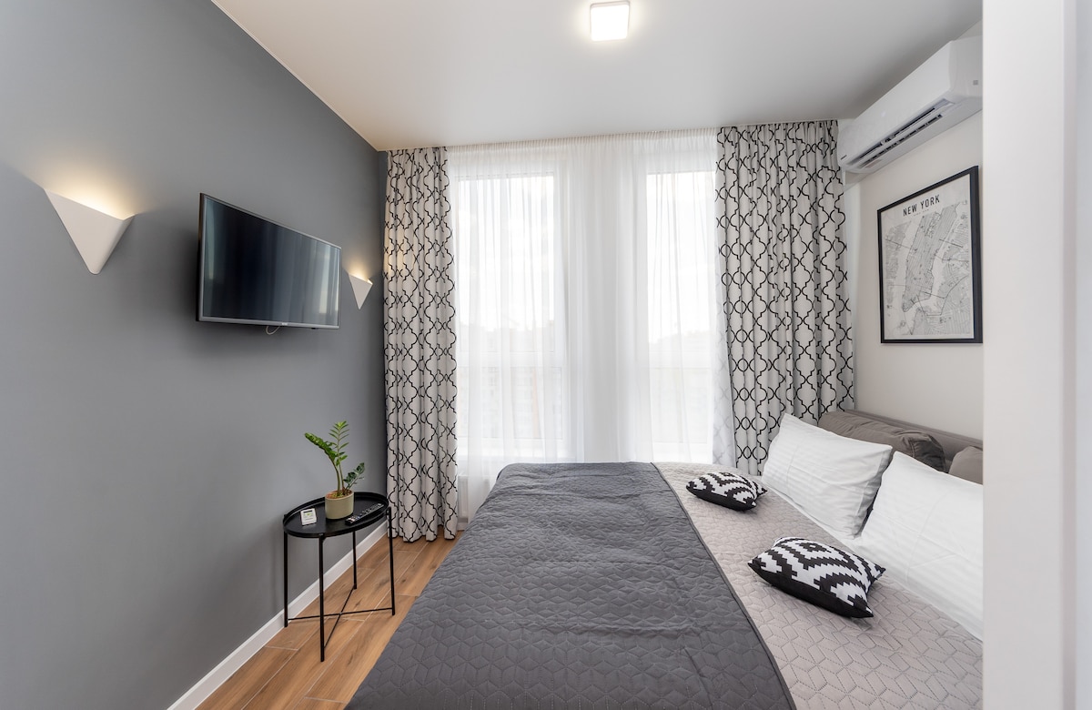 This modern apartment is made with quality materials and thought throughout every detail. Located in a quiet area, yet steps away from Pechersk attractions, cafes and bars, a big supermarket, and close to two large parks with a scenic river view and great for morning jogging.