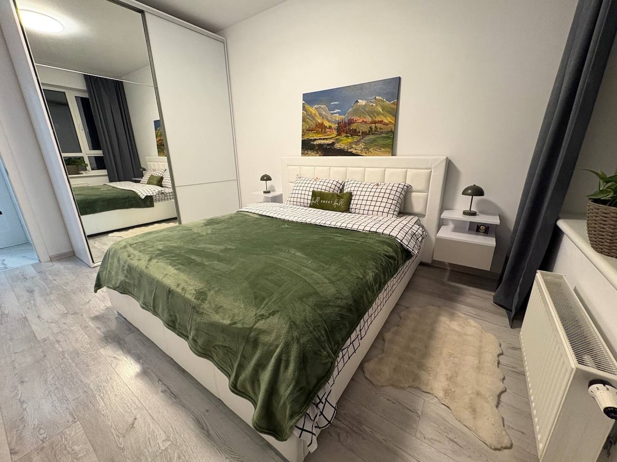 Relax in a deep soaking bath, sleep on a premium-quality mattress, read in a cozy armchair, or enjoy a glass of wine while watching the sunset from the 12th-floor window. This apartment is designed for comfort, calm, and functionality — ideal for both short and extended stays. You’ll have access to a fully equipped kitchen, fast Wi-Fi and a bicycle for exploring the area. Right across the street is a forest park — perfect for picnics, hiking and bike rides.