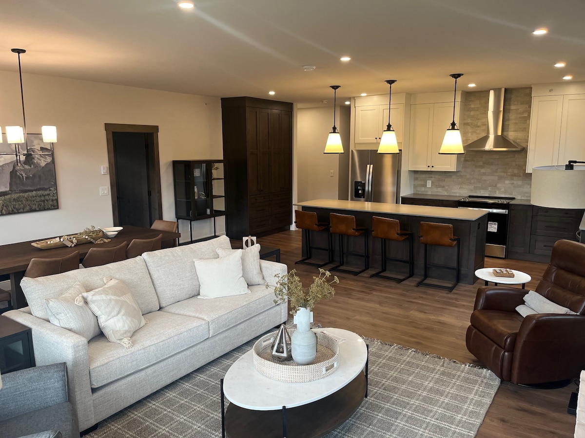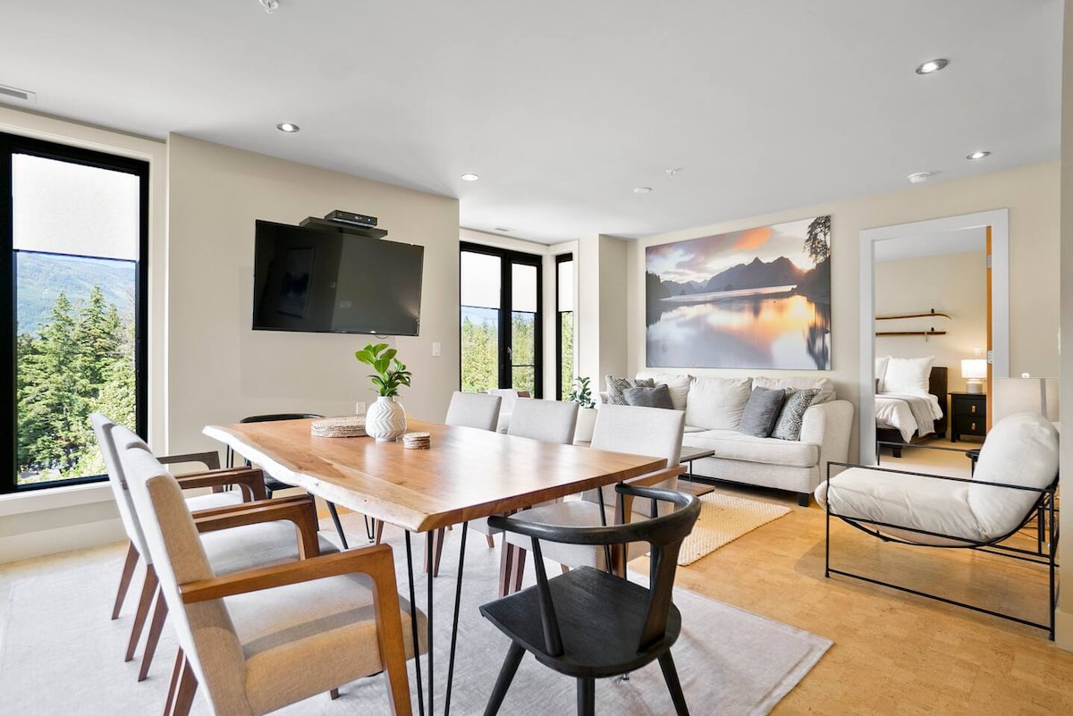 Welcome to your private retreat. This serene lower suite features sweeping lake views and beautifully designed spaces to relax in comfort. Explore nearby trails, take in the scenery, or simply unwind at your own pace. Enjoy morning coffee outdoors, breathtaking sunsets, and peaceful evenings under the stars. Light daytime sounds from above may occur, and we strive to keep the space tranquil. Experience a refined escape with unforgettable views.