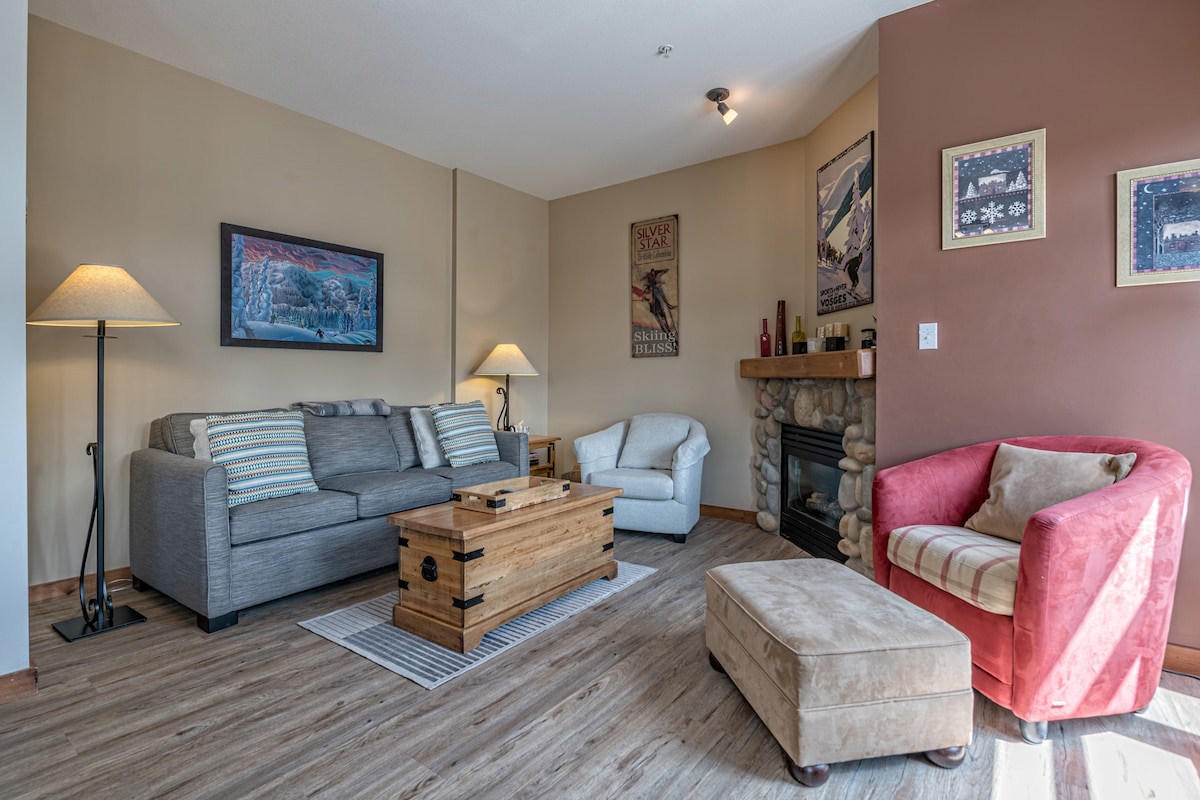 3 bedroom, 2 bathroom unit sleeps 9. The living, dining, kitchen and bedrooms are all on the same level with plenty of storage and closet space. The unit comes with laundry, 58” TV, wifi, board-games and a private hot tub on a large patio with incredible views. Parking for two vehicles – one in the heated garage with EV charger and one in the driveway. The complex has additional visitor parking spots. The heated garage also comes with ski/board storage and boot/glove warmers.
