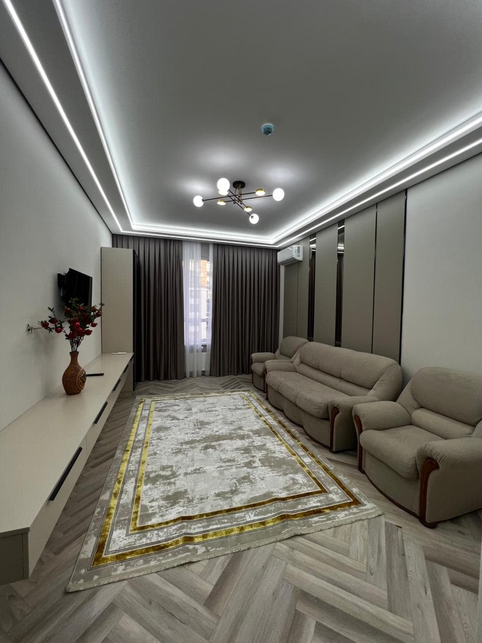 Новая стильная 2-комнатная квартира в престижном районе Нурсат. Современная кухня, светлая гостиная со стеклянными дверями и просторная ванная с качественной отделкой создают уют и комфорт. Рядом находятся красивые парки и мечеть. Тихий и безопасный район с удобной инфраструктурой делает жильё идеальным для отдыха и деловых поездок.