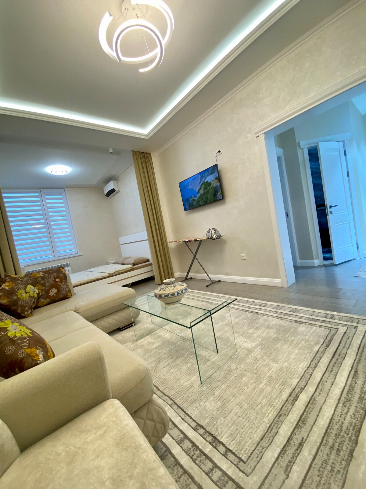 Дорогие гости и жители г.Шымкент! Предлагаем Вашему вниманию квартиру Бизнес класса. В апартаментах есть всё необходимое для Вашего комфортного проживания – мебель, бытовая техника, чистое постельное белье и полотенца, укомплектованные одноразовые гигиеническими средствами и тапочками. Добро пожаловать, мы ждём Вас в гости! С Уважением, Ваш уютный BalAPART