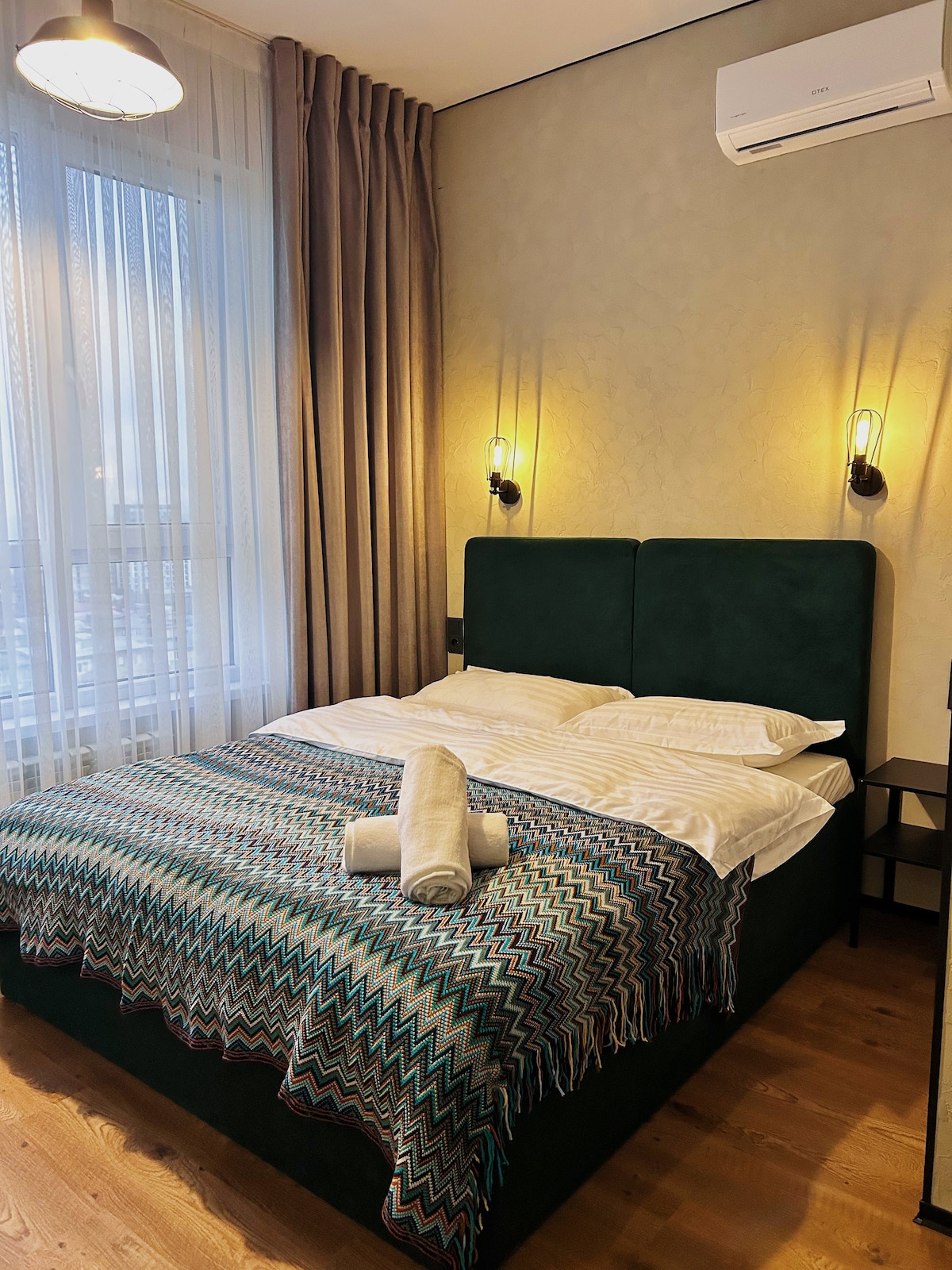 Стильная однокомнатная квартира с уютной атмосферой и продуманным интерьером. Из окна открывается потрясающий вид на город, особенно красивый утром и вечером. Подходит как для командировочных, так и для семейных пар. В квартире тепло и уютно, есть всё необходимое — кухня, Wi-Fi и комфортное место для отдыха после насыщенного дня.